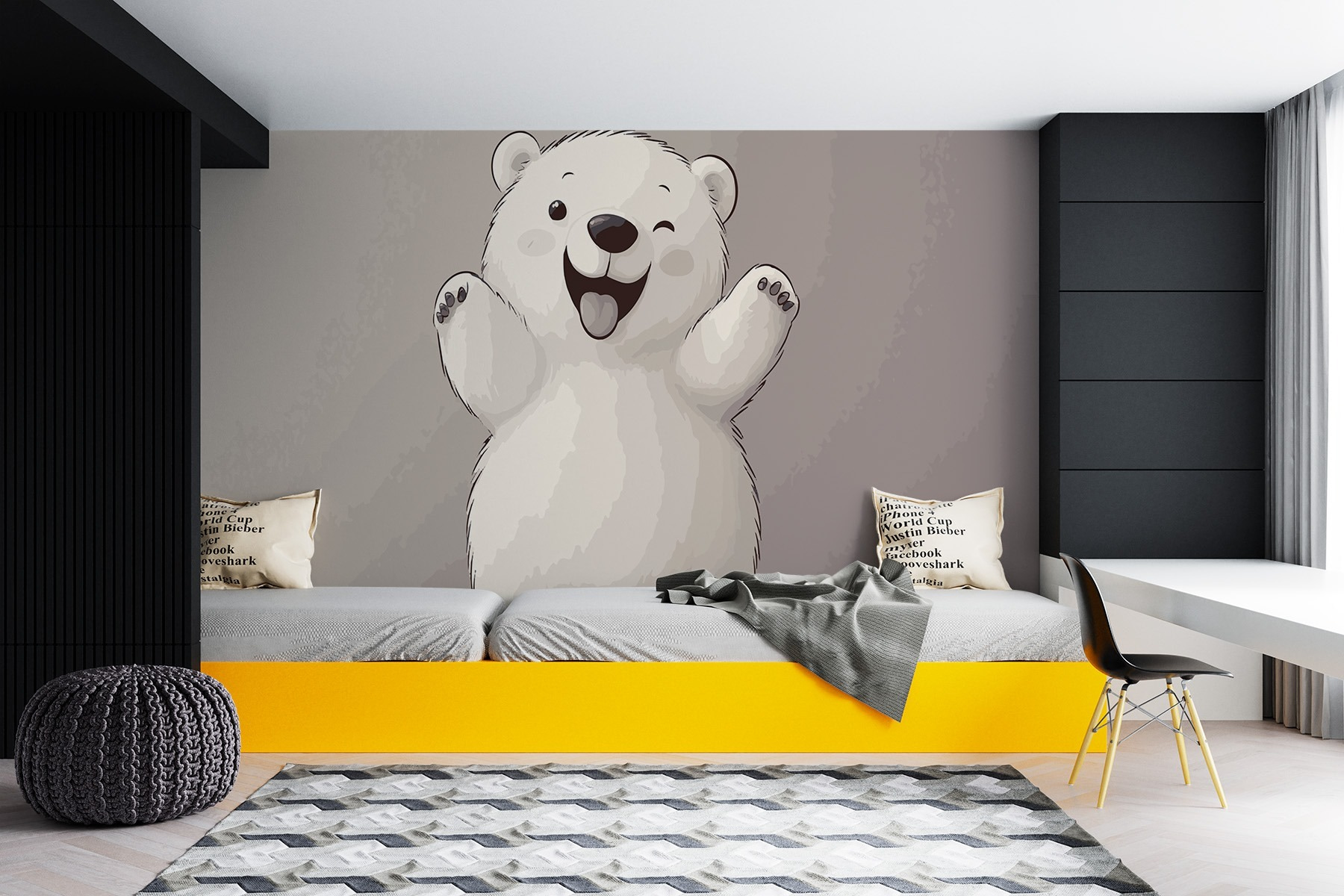 Verschönern Sie jeden Raum mit dieser bezaubernden Fototapete, die einen fröhlichen Eisbären zeigt! Mit seinem verspielten Grinsen und seinem freundlichen Winken ist dieses charmante Design perfekt für Kinderzimmer oder jede Ecke, die ein wenig Freude braucht. Stellen Sie sich vor, Sie betreten ein Zimmer, in dem dieser kleine Kerl Sie begrüßt – und Sie sind sofort glücklich! Es ist, als hätte man einen flauschigen Freund an der Wand hängen, der jeden Besuch zu einem Abenteuer werden lässt. Und dank der sanften Farben passt es zu fast jeder Einrichtung. Stellen Sie sich das Lachen und die Geschichten vor, die dieses Wandbild inspirieren könnte!