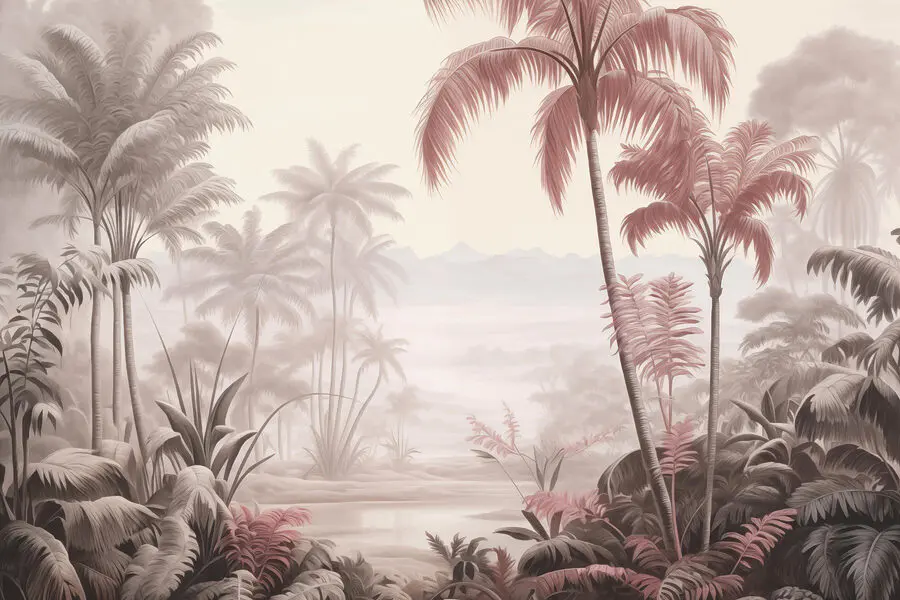 Stellen Sie sich vor, dass Sie jedes Mal, wenn Sie Ihre Wand betrachten, in ein heiteres tropisches Paradies eintreten. Dieses atemberaubende Wandbild mit seinen anmutigen Palmen und nebelverhangenen Bergen flüstert die süßen Töne eines ruhigen Dschungelrefugiums. Die sanften Farben fühlen sich an Ihren Wänden wie eine warme Umarmung an und erhellen den Raum mühelos. Es eignet sich perfekt für eine ruhige Leseecke oder einen entspannten Ort zum Träumen. Stellen Sie sich vor, Sie nippen an Ihrem Kaffee und spüren die sanfte Brise auf Ihrer Haut, selbst wenn sie nur von einem Ventilator kommt! Es ist, als ob man sich ein kleines Stück Tropen ins Haus holt, nur ohne die Feuchtigkeit und die Mücken. Ihr Raum wird zu einem ruhigen Zufluchtsort, einladend und erfrischend – wer würde das nicht wollen?