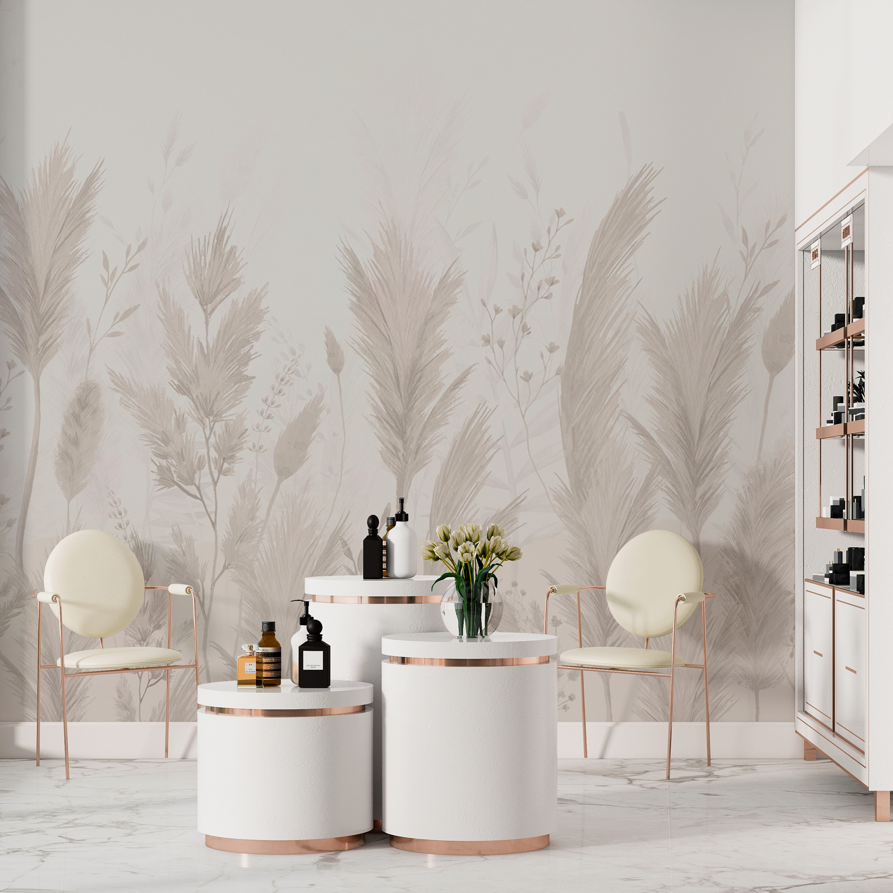 Verwandeln Sie jeden Raum mit der Fototapete “Delicate Plants in Soft Shades”. Dieses verträumte Design bringt die Natur ins Haus und hüllt die Wände in sanfte, beruhigende Farben, die Ruhe ausstrahlen. Stellen Sie sich vor, es ist Sonntagmorgen, die Sonne kommt herein und wirft weiche Schatten auf die zarten Pflanzen. Es ist eine ruhige Kulisse, um Kaffee zu trinken oder sich mit einem guten Buch zu entspannen – wer braucht schon einen Rückzugsort im Wald, wenn diese Schönheit nur einen Blick entfernt ist? Schmücken Sie Ihren Raum mit dieser natürlichen Ausstrahlung, und beobachten Sie, wie er im Handumdrehen zu einem gemütlichen Rückzugsort für Freunde und Familie wird. Es ist wirklich so, als ob man sich die Natur ins Haus holt, nur ohne die Ungeziefer!