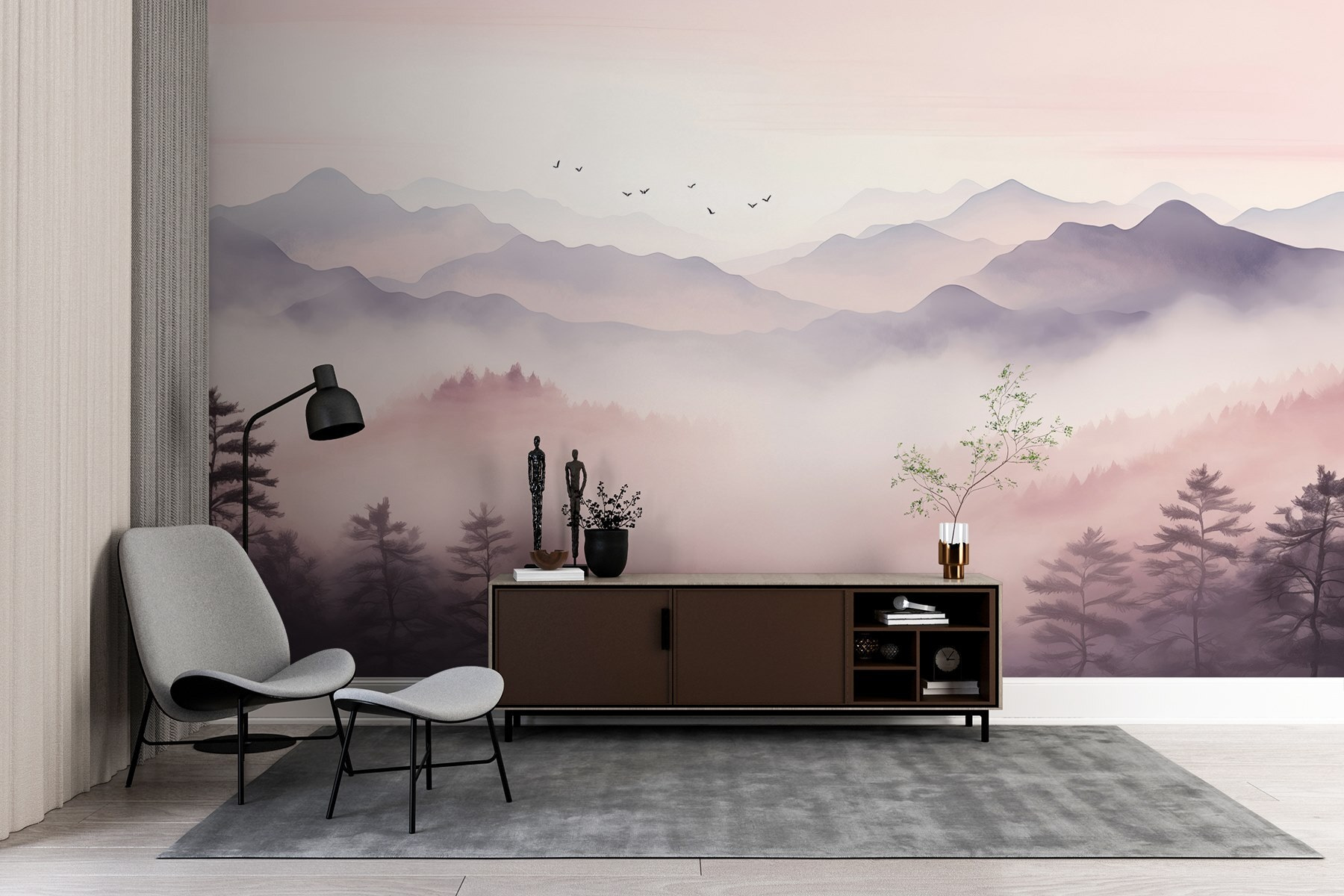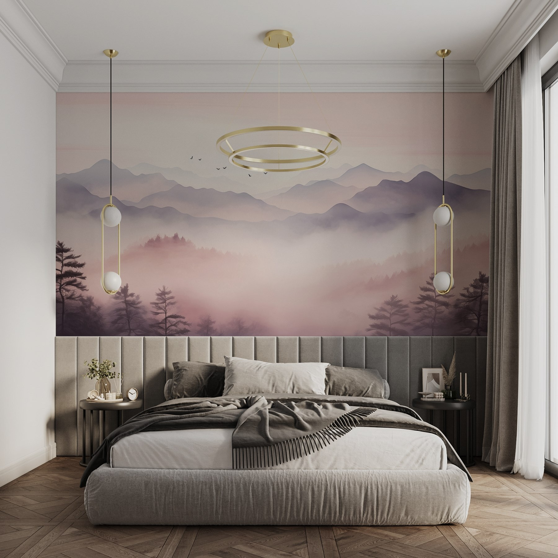 Verwandeln Sie Ihren Raum mit dem Wandbild “Landschaft mit Bäumen und Bergen”. Diese atemberaubende Fototapete bringt die heitere Stimmung der Natur direkt ins Haus – frische Bergluft, ohne dass man Wanderschuhe braucht. Die sanften Rosa- und Grautöne harmonieren wunderbar und schaffen eine friedliche Kulisse. Stellen Sie sich vor, Sie schlürfen einen Kaffee, während Sie auf diese sanften Hänge blicken; es fühlt sich jeden Tag wie eine gemütliche Flucht an. Die Bäume stehen hoch, als ob sie die Geheimnisse der Natur flüstern würden. Dieses Wandbild ist perfekt für alle, die sich zu Hause einen Hauch von Ruhe wünschen, denn es ist ein Hauch von frischer Luft! Außerdem ist es ein toller Gesprächsanlass – wer liebt nicht eine gute Berggeschichte?