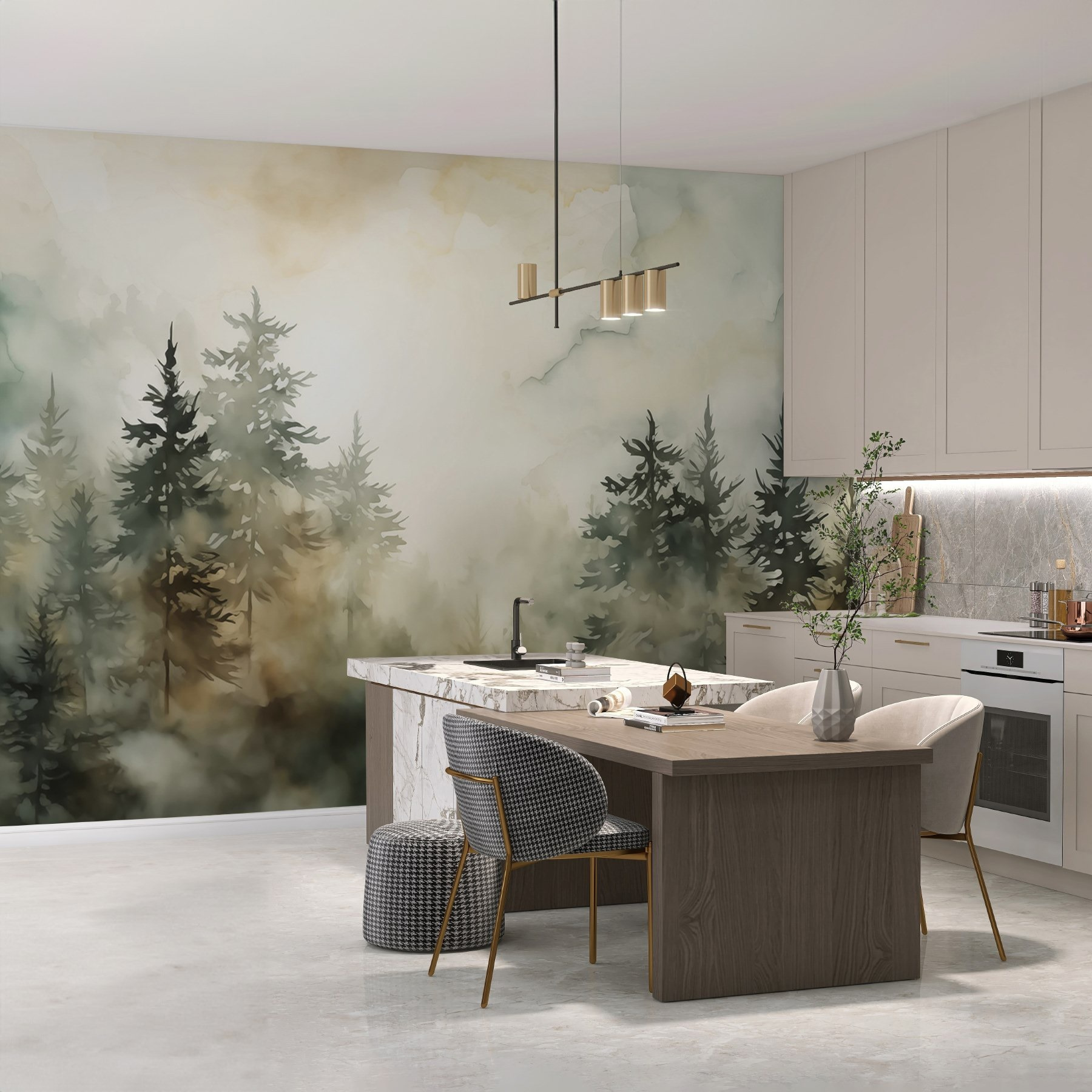 Verwandeln Sie Ihren Raum mit der bezaubernden Fototapete “Nebliger Wald mit Bäumen”. Stellen Sie sich vor, Sie wachen jeden Tag in einer ruhigen Waldszene auf, der Nebel wirbelt um Bäume, die Geheimnisse der Natur zu flüstern scheinen. Diese Fototapete hüllt Ihr Zimmer in eine ruhige Aura und macht es zu einem gemütlichen Rückzugsort von der Hektik des Alltags. Perfekt für jene Tage, an denen die Welt draußen zu laut ist. Jedes Mal, wenn Sie das Wandbild betrachten, ist es, als würden Sie in eine verträumte Welt eintauchen. Ganz gleich, ob Sie Freunde empfangen oder einfach nur einen ruhigen Moment mit einem Buch genießen, dieses Wandbild bringt einen Hauch von Magie und Ruhe an jede Wand und fügt sich mühelos in verschiedene Einrichtungsstile ein.