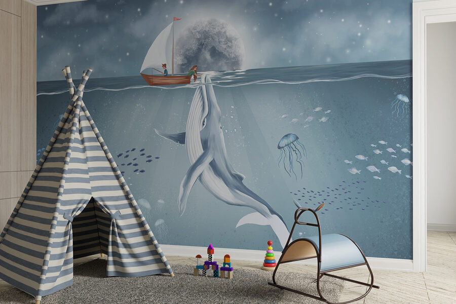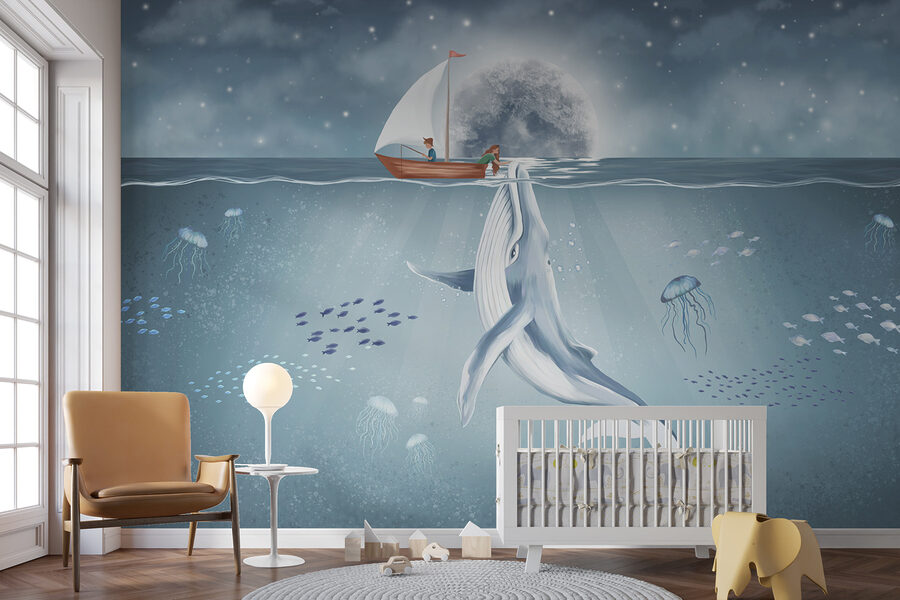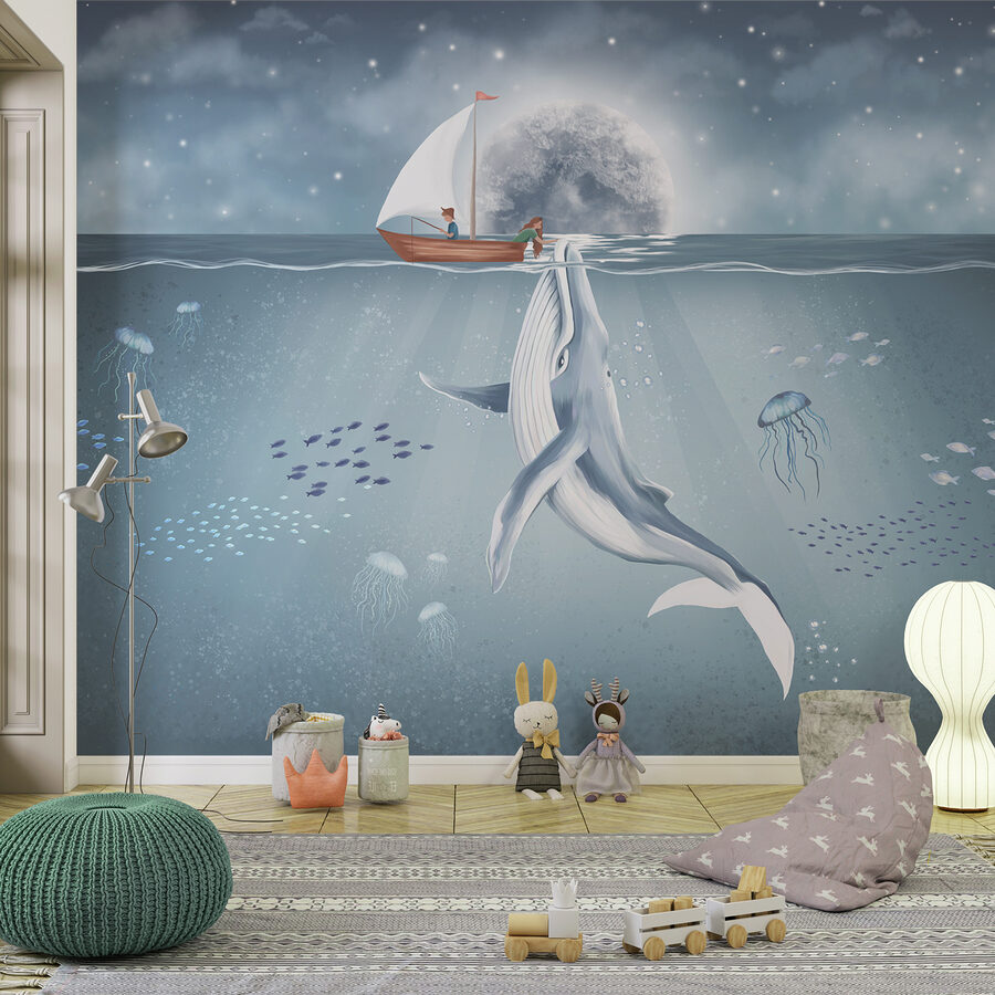 Tauchen Sie ein in eine wunderbare Welt mit der Fototapete “Whale Swimming in the Water”. Diese Fototapete verwandelt jede triste Wand in eine heitere Unterwasserszene, in der ein majestätischer Wal anmutig unter den Wellen gleitet. Stellen Sie sich vor: Sie sitzen in Ihrem Wohnzimmer und trinken Tee, und da ist sie, die ruhige Schönheit des Ozeans direkt vor Ihnen. Die sanften Blau- und Weißtöne schaffen eine beruhigende Atmosphäre, die perfekt ist, um nach einem langen Tag die Seele baumeln zu lassen. Außerdem regt es zu Gesprächen an – jeder liebt eine gute Walgeschichte! Stellen Sie sich vor, wie Ihre Freunde hereinspazieren und sich die Augen über diese heitere, ozeanische Kulisse weiten. Perfekt für ein Kinderzimmer oder eine gemütliche Leseecke – es ist, als würde man sich ein Stück Meer nach Hause holen. Erfreuen Sie sich an der Schönheit der Natur und sorgen Sie für frischen Wind in Ihrer Einrichtung!