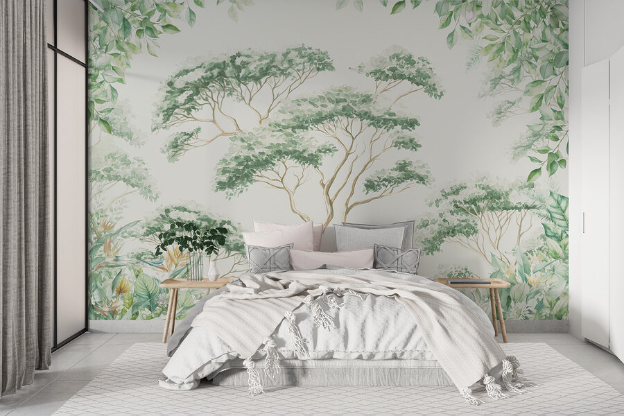 Verwandeln Sie Ihren Raum mit diesem bezaubernden “Wandgemälde mit Bäumen und Pflanzen”. Stellen Sie sich vor, dass Sie jedes Mal, wenn Sie den Raum betreten, in einen ruhigen Wald eintauchen – das fühlt sich an wie ein Mini-Urlaub, oder? Die zarten Grüntöne und sanften Linien bringen einen Hauch von frischer Luft und lassen jede Wand lebendig wirken.