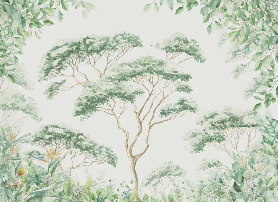 Verwandeln Sie Ihren Raum mit diesem bezaubernden “Wandgemälde mit Bäumen und Pflanzen”. Stellen Sie sich vor, dass Sie jedes Mal, wenn Sie den Raum betreten, in einen ruhigen Wald eintauchen – das fühlt sich an wie ein Mini-Urlaub, oder? Die zarten Grüntöne und sanften Linien bringen einen Hauch von frischer Luft und lassen jede Wand lebendig wirken.