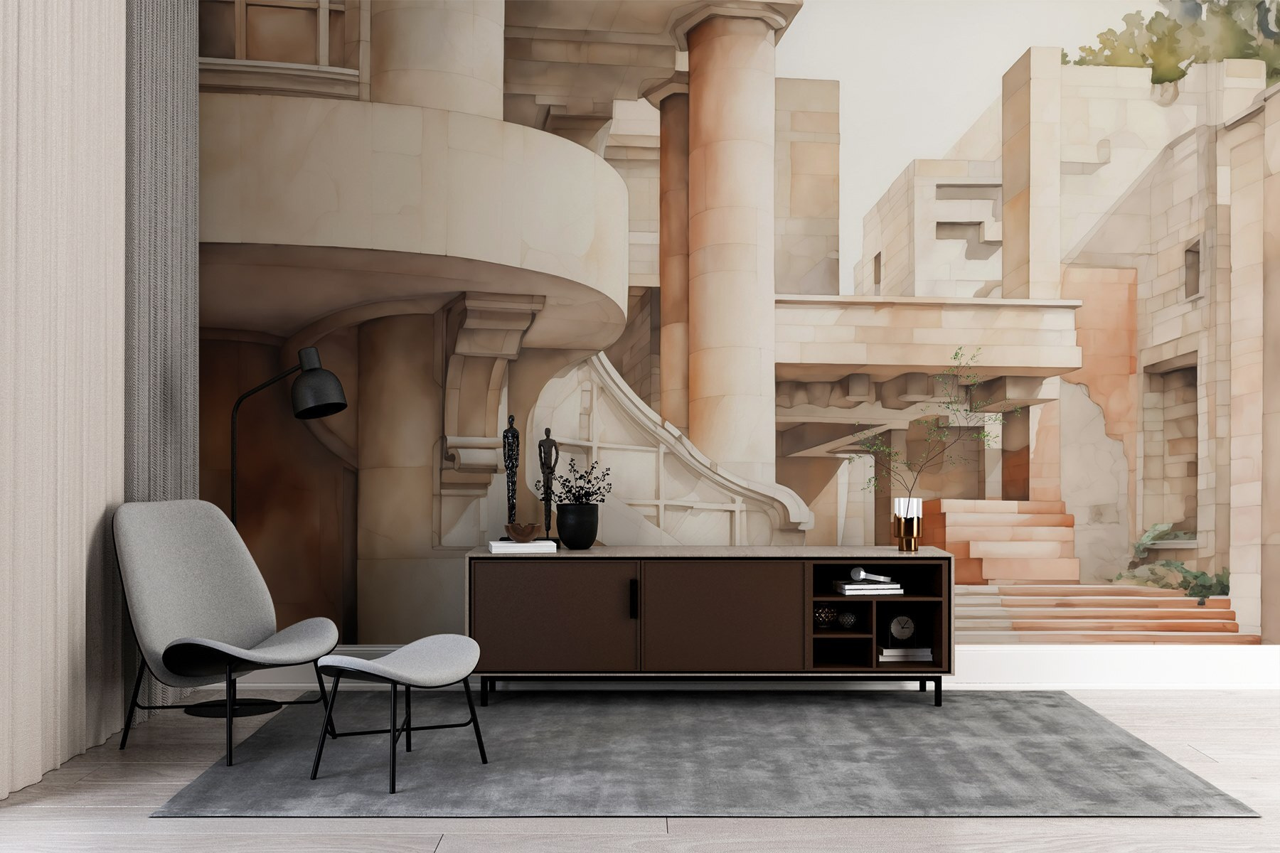 Treten Sie ein in eine Welt der Kreativität mit dieser atemberaubenden Fototapete, die eine geschwungene Treppe und architektonische Eleganz zeigt. Es ist, als hätte man ein Kunstwerk, das den Blick schweifen lässt und die Fantasie beflügelt. Stellen Sie sich vor: eine gemütliche Leseecke, in der die Fototapete die Illusion von Tiefe erzeugt und Ihren Raum in einen stilvollen Rückzugsort verwandelt. Die sanften Farben und fließenden Linien umhüllen den Raum und verleihen ihm ein warmes und einladendes Gefühl. Es ist perfekt für alle, die wollen, dass ihre Wände Bände sprechen, ohne ein Wort zu sagen. Verleihen Sie Ihrem Zuhause einen Hauch von Charme – es ist nicht nur Dekoration, es ist ein Erlebnis!