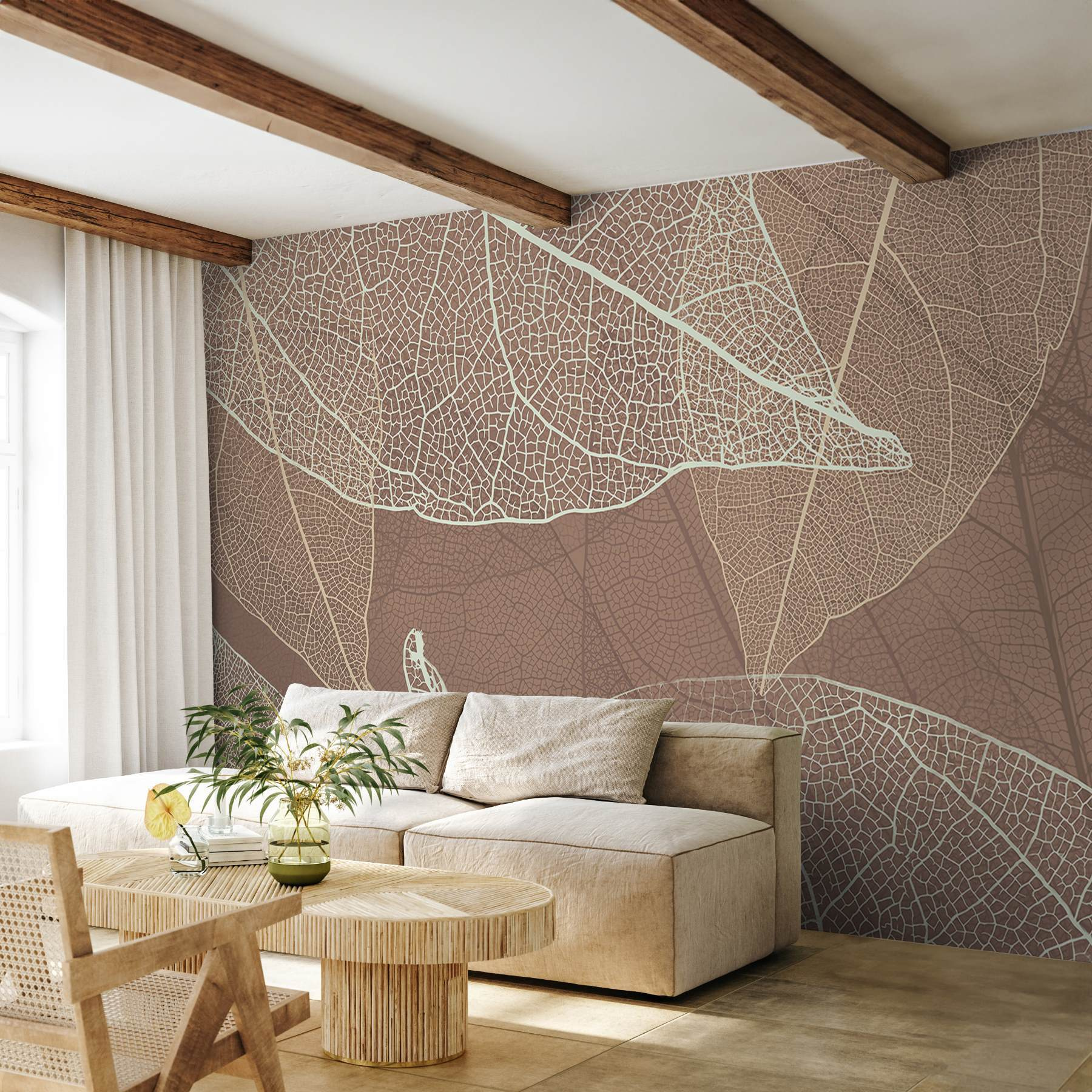 Verwandeln Sie jeden Raum in einen ruhigen Rückzugsort mit der Fototapete “Delicate Patterns of Nature’s Design”. Stellen Sie sich vor, Sie betreten einen Raum, in dem die Wände Geschichten von eleganten Blättern und erdigen Tönen flüstern. Es ist, als ob man sich ein Stück Natur ins Haus holt – perfekt für eine gemütliche Leseecke oder die Wand, die immer ein bisschen zu kahl wirkt. Die verschlungenen Muster sind beruhigend und fesselnd zugleich, sodass man beim Betrachten der Details leicht das Zeitgefühl verliert. Ihre Freunde könnten sogar denken, dass Sie einen geheimen Garten versteckt haben! Perfekt für alle, die die schönen Dinge des Lebens schätzen, ohne viel Aufhebens zu machen. Ein bisschen Natur hat noch niemandem geschadet, oder? Nur zu, lassen Sie dieses Wandbild Ihr Zimmer in seinen sanften Charme einhüllen.