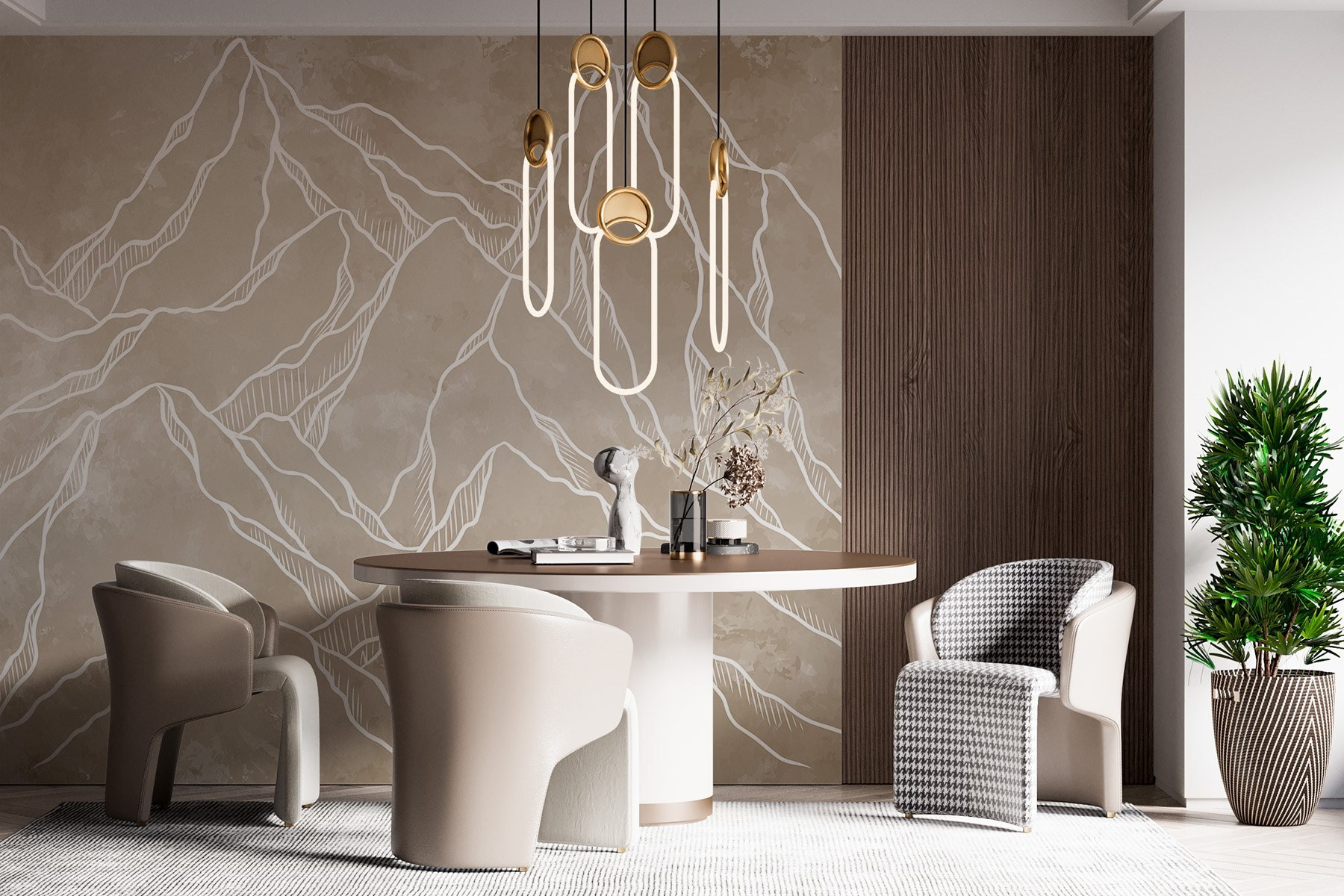 Verwandeln Sie jeden Raum in einen ruhigen Zufluchtsort mit dieser atemberaubenden Fototapete, die eine wunderschön gezeichnete Bergkette zeigt. Stellen Sie sich vor, wie Sie Ihren Morgenkaffee schlürfen und dabei auf diese eleganten Gipfel blicken – fast fühlt man sich wie auf einer Bergwanderung, ohne ins Schwitzen zu kommen! Die sanften Erdtöne fügen sich mühelos in jede Einrichtung ein und bringen einen Hauch von Natur ins Haus. Ob in einem gemütlichen Wohnzimmer oder einem kühlen Büro, diese Fototapete verleiht eine warme, einladende Atmosphäre. Außerdem eignet es sich perfekt zum Träumen; die majestätischen Berge könnten ein spontanes Abenteuer auslösen. Wer würde sich das nicht wünschen? Holen Sie sich die Ruhe der Natur zu sich nach Hause!