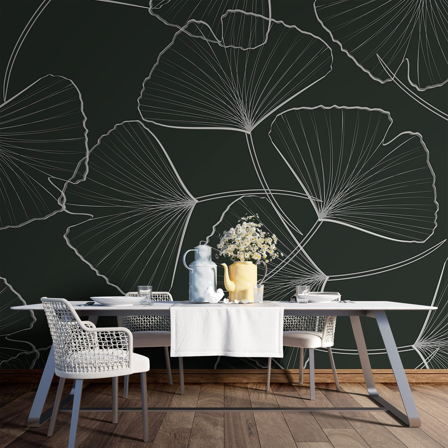 Verwandeln Sie jeden Raum in einen ruhigen Zufluchtsort mit dieser atemberaubenden Fototapete, die zarte Blätter vor einem kräftigen schwarzen Hintergrund zeigt. Es ist, als würde man sich einen Mini-Regenwald nach Hause holen – nur ohne die Feuchtigkeit. Stellen Sie es sich einfach vor: Jedes Blatt fließt anmutig und verleiht der Natur einen Hauch von Eleganz. Perfekt für eine gemütliche Leseecke oder die leere Wand, auf die Sie schon lange ein Auge geworfen haben. Freunde werden vorbeikommen und die Atmosphäre kommentieren, und vielleicht entfacht es ja ein Gespräch über Regenwaldabenteuer oder ruhige Kaffeemorgen. Fühlt sich noch jemand Zen?