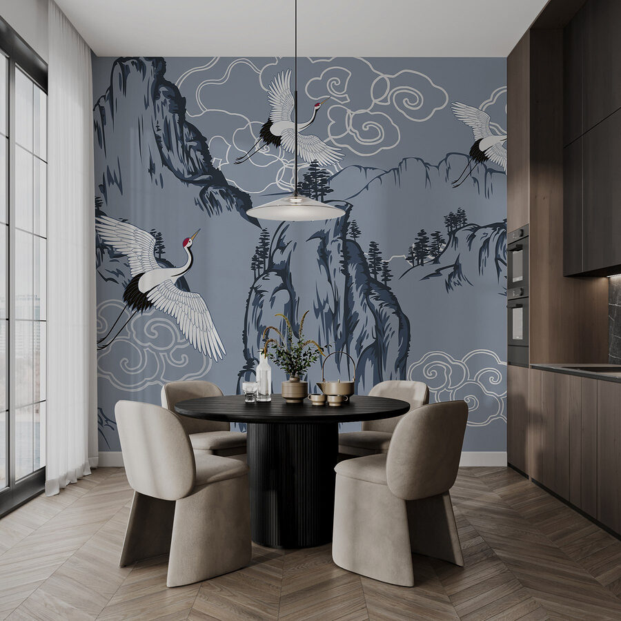Verwandeln Sie Ihren Raum in einen ruhigen Zufluchtsort mit dieser atemberaubenden Fototapete, auf der anmutige Vögel über majestätischen Bergen schweben. Es ist, als ob man sich ein Stück Natur ins Haus holt, ohne die ganzen Pollen. Stellen Sie sich vor, Sie schlürfen Ihren Morgenkaffee und fühlen sich wie auf einem friedlichen Berggipfel – nur ohne die Wanderschuhe. Die sanften Farben und filigranen Details laden zu einer ruhigen Atmosphäre ein und eignen sich perfekt für eine gemütliche Leseecke oder ein ruhiges Schlafzimmer. Außerdem ist es ein toller Gesprächsanlass! Gäste werden neugierig auf die eleganten Kraniche sein, und Sie haben die perfekte Geschichte parat. Es ist mehr als nur Dekoration; es ist ein kleines Stückchen Zen für Ihre Wand. Bringen Sie frischen Wind in Ihr Zimmer und lassen Sie Ihre Wände Geschichten aus der Natur flüstern!