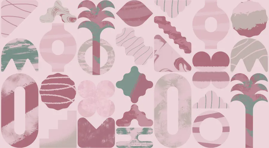 Fototapeten Rosa und grüner Hintergrund mit verschiedenen Formen (Artikelnummer: w02550)