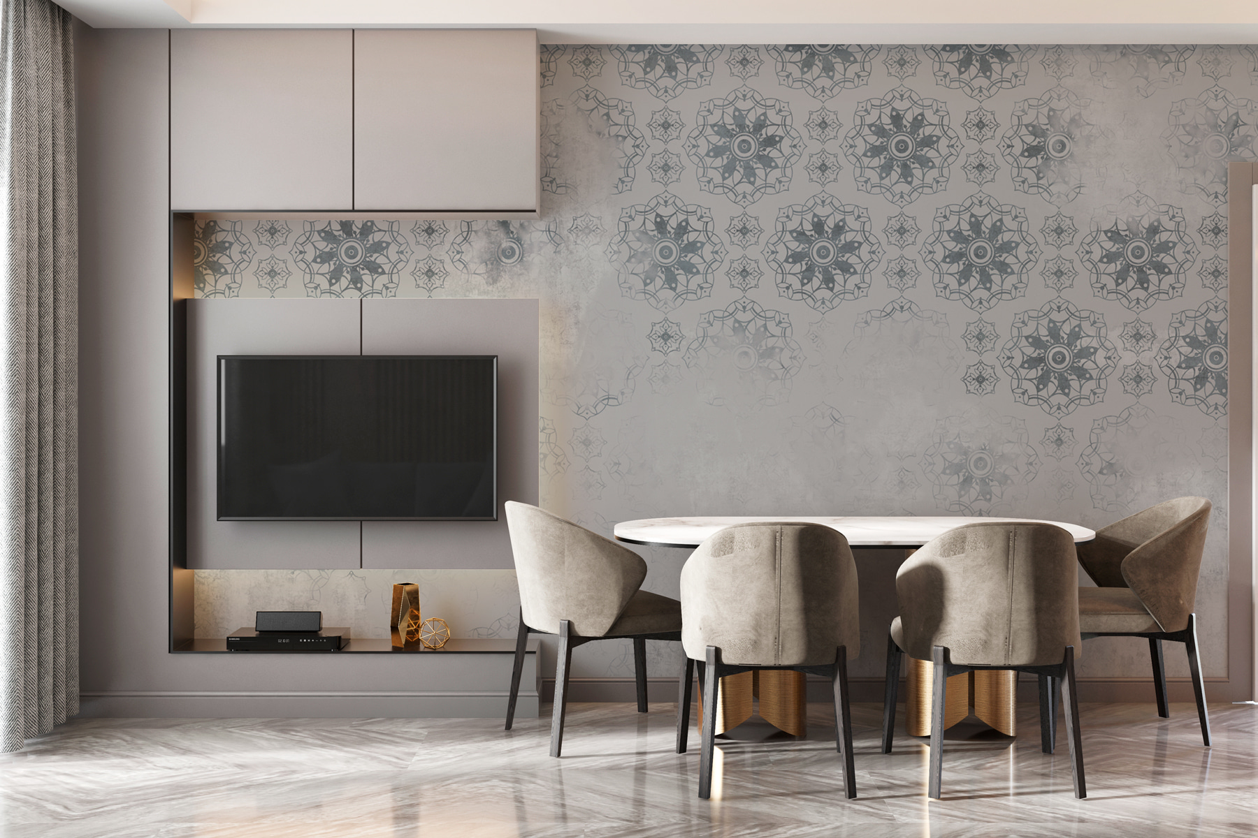 Sehen Sie sich vor dem Kauf genau an, wie Ihr Raum mit einer neuen Tapete aussehen wird. Professionelle Visualisierung durch erfahrene Designer ohne Kosten oder Kaufverpflichtung.