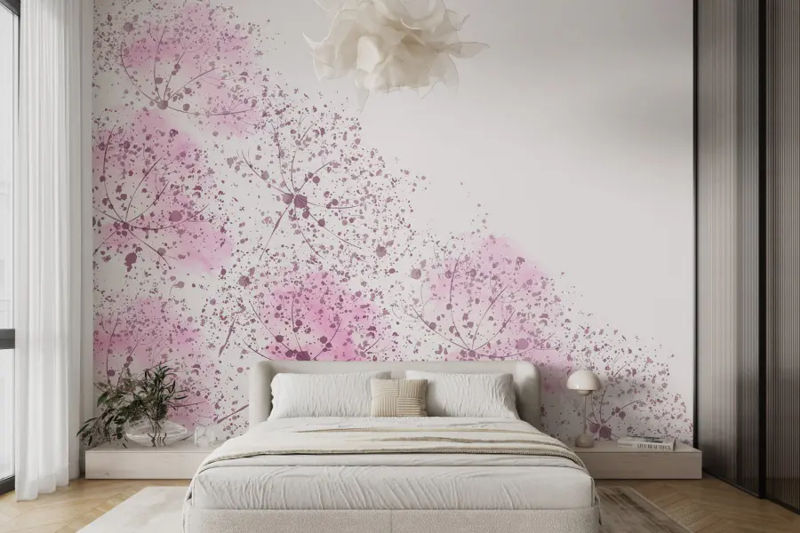 Verwandeln Sie Ihren Raum mit diesem bezaubernden Wandbild mit rosa Blumen und verspielten lila Punkten. Es ist wie ein Aquarelltraum, der Heiterkeit und Charme versprüht. Stellen Sie sich vor, Sie wachen in einer gemütlichen Ecke auf, die mit diesen zarten Blüten geschmückt ist, wobei jeder Strich eine Geschichte über die Kunstfertigkeit der Natur erzählt. Dieses Wandbild ist perfekt für alle, die einen Hauch von Laune lieben, denn es setzt einen sanften Farbakzent, ohne zu laut zu sein. Ob es einen kleinen Raum erhellt oder einen Flur auflockert, es lädt zu einem Gefühl der Ruhe ein. Fühlen Sie, wie der Stress dahinschmilzt, während Sie sich in seiner Schönheit sonnen, eine florale Flucht direkt zu Hause. Können Sie sich nicht einfach eine Tasse Tee daneben vorstellen, um die Atmosphäre zu genießen?