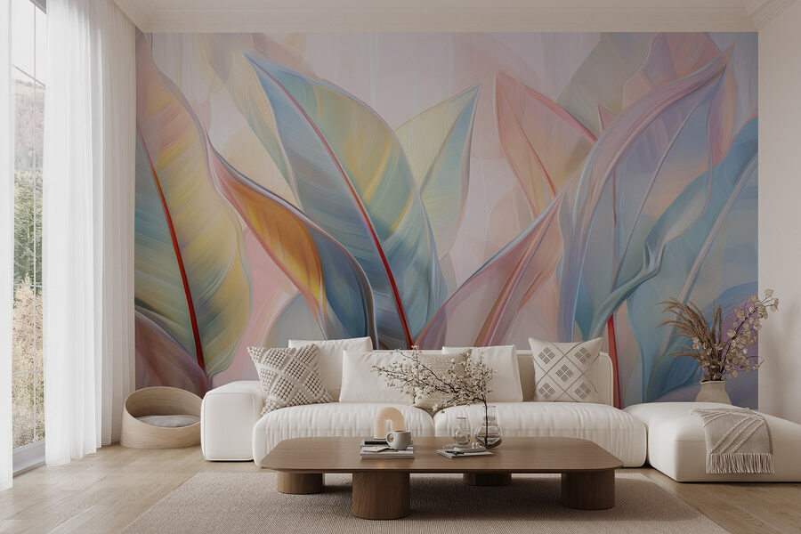 Treten Sie mit der Fototapete “Delicate Hues of Nature Intertwine” in eine verträumte Oase ein. Stellen Sie sich vor, dass Ihre Wände mit zarten, pastellfarbenen Blättern bedeckt sind, die Geschichten von tropischen Fluchten flüstern. Die sanften Farbtöne ahmen den ruhigen Tanz des Lichts nach, das durch die Palmwedel fällt, und geben jedem Raum das Gefühl eines ruhigen Rückzugsortes. Perfekt, um eine gemütliche Leseecke einzurichten oder einen tristen Flur aufzuhellen – dieses Wandbild sorgt für eine frische Atmosphäre, ohne dass eine größere Renovierung nötig ist. Stellen Sie sich vor, Sie nippen an Ihrem Morgenkaffee und haben das Gefühl, in einen üppigen Garten spaziert zu sein. Wer würde nicht gerne den Charme der Natur um sich herum spüren?