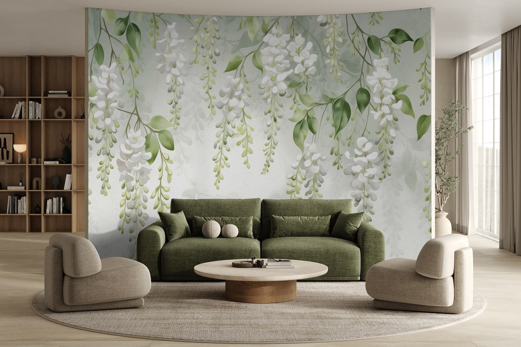 Verwandeln Sie jeden Raum in einen heiteren Rückzugsort mit dem Wandbild “Delicate Blossoms Hanging Gracefully Down”. Stellen Sie sich vor: Sie gehen in Ihr Wohnzimmer und da ist sie, eine Kaskade zarter weißer Blüten, die sich sanft vor Ihren Augen wiegt. Es ist, als hätten Sie einen geheimen Garten direkt an der Wand – perfekt, um eine ruhige, entspannte Atmosphäre zu schaffen. Die subtilen Grün- und Weißtöne verleihen dem Raum einen erfrischenden Touch und lassen ihn lebendig und einladend wirken. Stellen Sie sich vor, wie Sie es sich mit einem guten Buch gemütlich machen, eingehüllt in diese blumige Umarmung. Das ist nicht nur Dekoration, sondern ein kleines Stück Natur, das Sie jeden Tag genießen können!