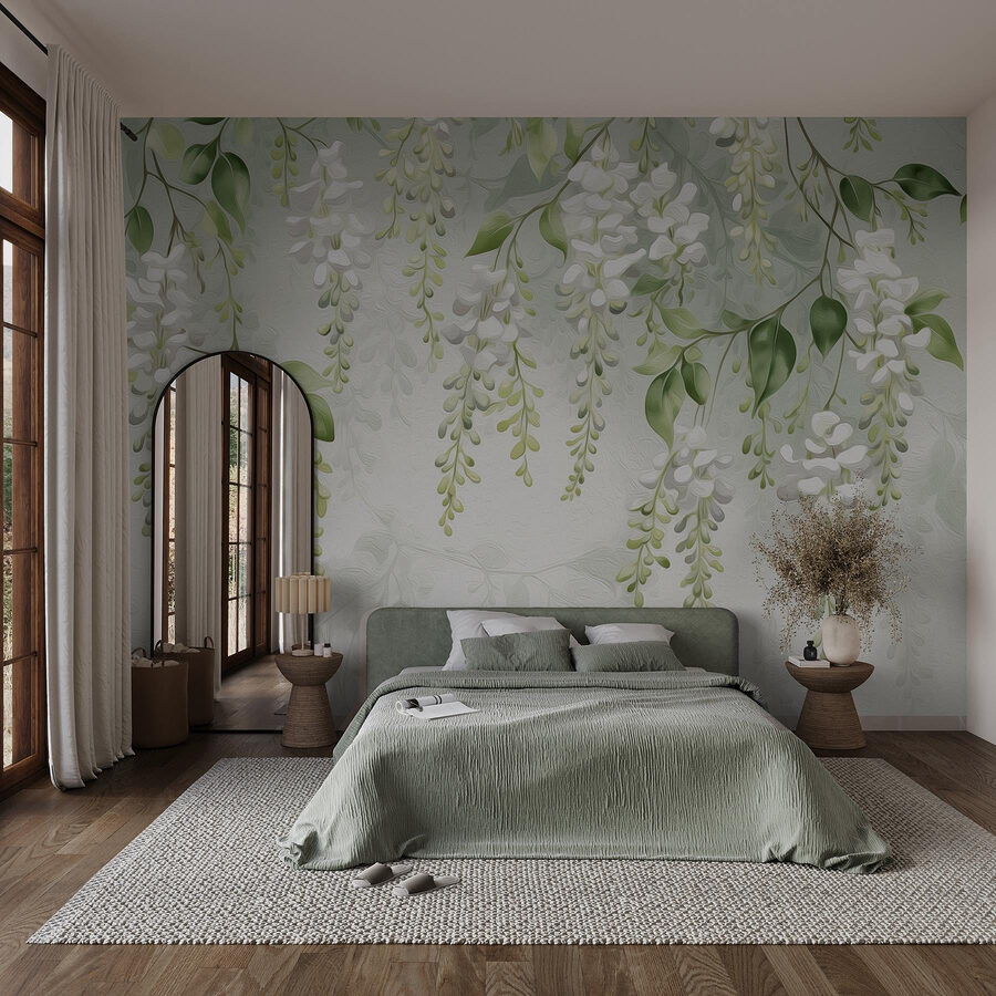 Verwandeln Sie jeden Raum in einen heiteren Rückzugsort mit dem Wandbild “Delicate Blossoms Hanging Gracefully Down”. Stellen Sie sich vor: Sie gehen in Ihr Wohnzimmer und da ist sie, eine Kaskade zarter weißer Blüten, die sich sanft vor Ihren Augen wiegt. Es ist, als hätten Sie einen geheimen Garten direkt an der Wand – perfekt, um eine ruhige, entspannte Atmosphäre zu schaffen. Die subtilen Grün- und Weißtöne verleihen dem Raum einen erfrischenden Touch und lassen ihn lebendig und einladend wirken. Stellen Sie sich vor, wie Sie es sich mit einem guten Buch gemütlich machen, eingehüllt in diese blumige Umarmung. Das ist nicht nur Dekoration, sondern ein kleines Stück Natur, das Sie jeden Tag genießen können!