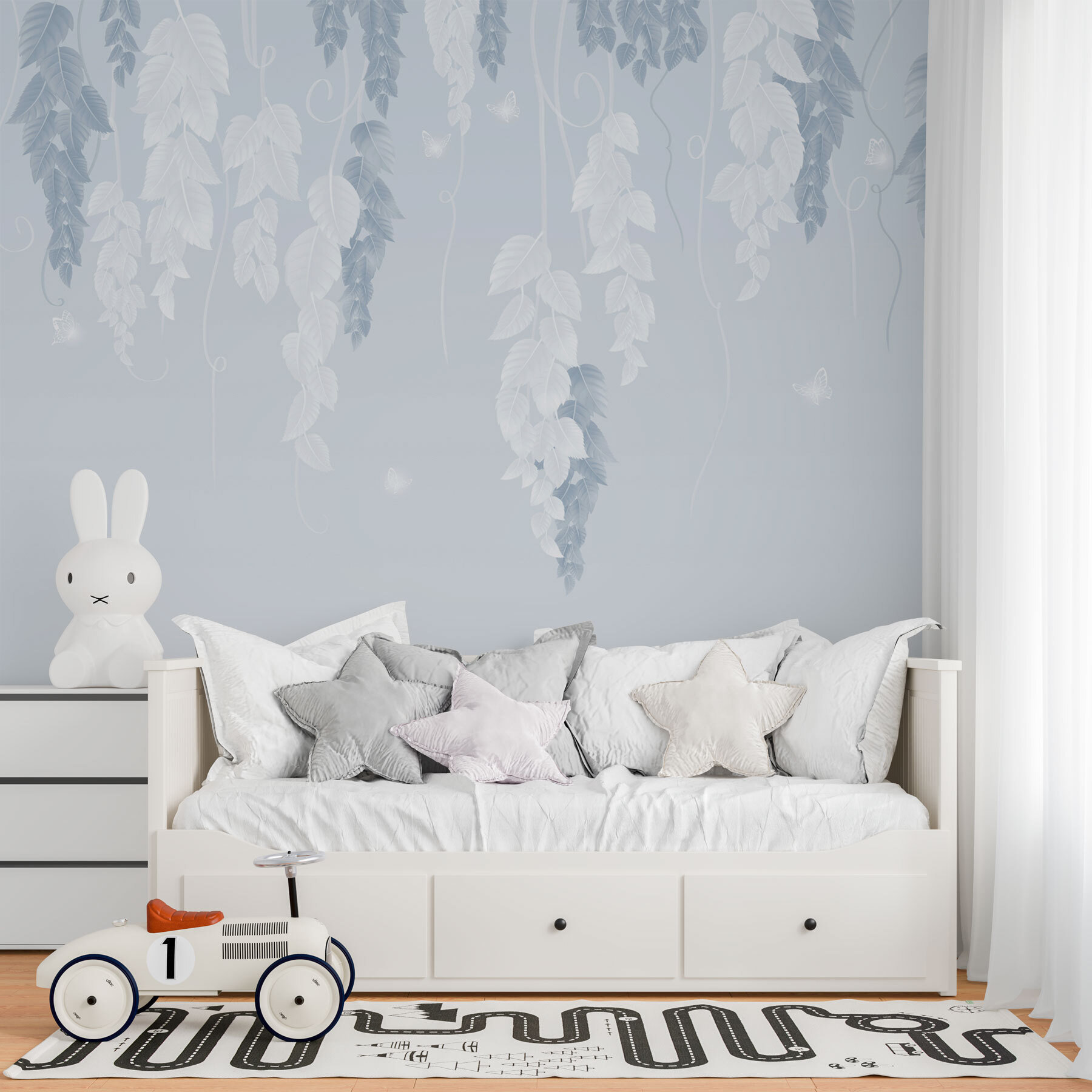 Verwandeln Sie jeden Raum in einen ruhigen Zufluchtsort mit dieser atemberaubenden Fototapete “White and Blue Leaves and Butterflies”. Stellen Sie sich vor, Sie betreten einen verträumten Garten, in dem zarte Blätter sanft fallen und Schmetterlinge in sanften Blau- und Weißtönen vorbeiflattern. Es ist, als würde man die Ruhe der Natur ins Haus holen – perfekt für eine gemütliche Leseecke oder ein friedliches Schlafzimmer. Außerdem sorgen die kühlen Farben für eine erfrischende Atmosphäre, so dass es sich problemlos mit allen möglichen Einrichtungen kombinieren lässt. Es ist nicht einfach nur eine Wand, sondern ein kleines Stückchen Ruhe, das flüstert: “Entspann dich, du hast es dir verdient.” Lassen Sie sich also von Ihrem inneren Design-Guru inspirieren – dieses Wandbild könnte Sie zu einer Teeparty mit guten Freunden oder zu einem Moment der stillen Besinnung anregen. Wer wünscht sich nicht diesen kleinen Hauch von Natur?
