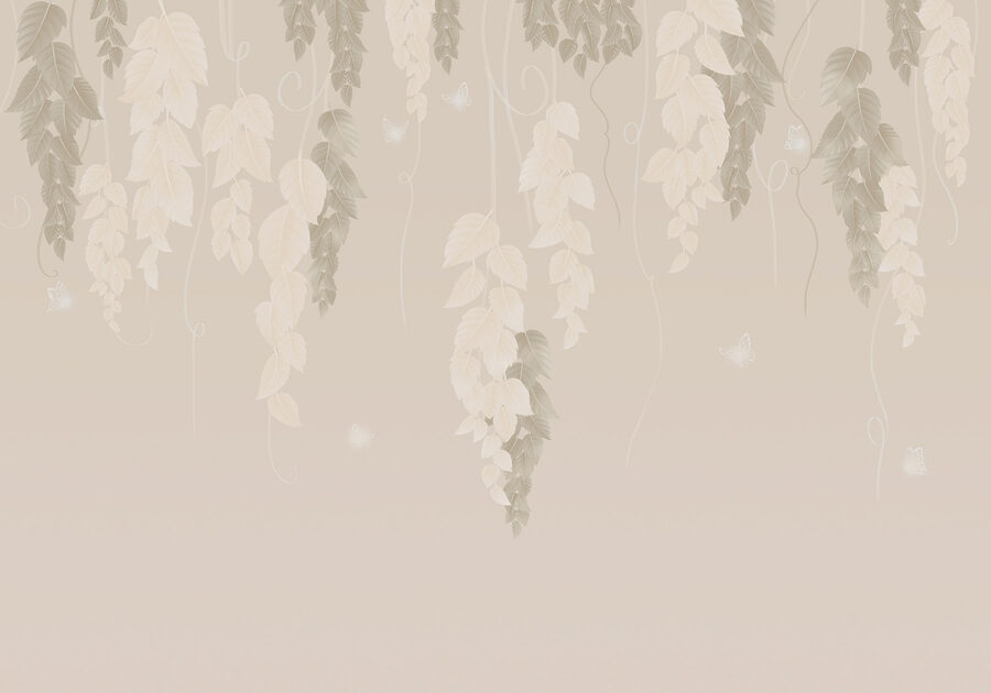 Verwandeln Sie Ihren Raum in einen ruhigen Rückzugsort mit dieser charmanten Fototapete mit zarten Blättern und skurrilen Schmetterlingen. Stellen Sie sich vor, Sie betreten einen Raum, in dem Sie die sanfte Eleganz der Natur umgibt – es ist, als würden Sie eine friedliche Waldlichtung betreten, ohne Ihr Zuhause zu verlassen. Die sanften Grün- und Cremetöne schaffen eine beruhigende Atmosphäre, die perfekt zum Entspannen nach einem langen Tag oder zum Kaffeetrinken an einem faulen Sonntagmorgen geeignet ist.