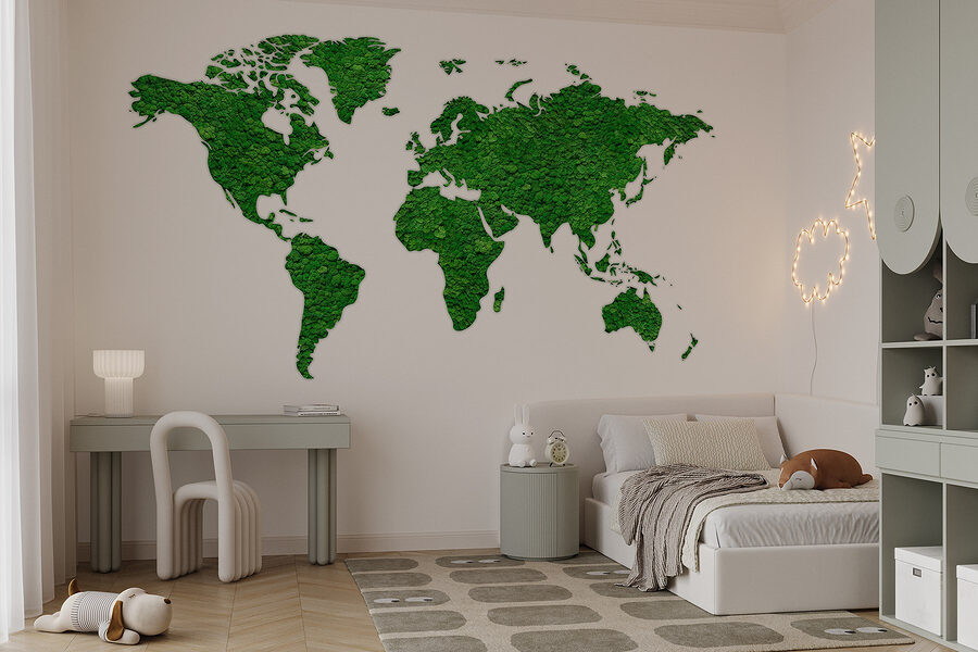 Verwandeln Sie Ihren Raum mit dieser atemberaubenden Fototapete, die eine Weltkarte aus üppigen grünen Pflanzen zeigt. Es ist, als würde man ein Stück Natur ins Haus holen – ohne Gießen! Stellen Sie sich vor, Sie machen es sich in einem Raum gemütlich, in dem die Kontinente aus lebhaftem Grün gestaltet sind. Das weckt die Neugierde und regt zu Gesprächen an – perfekt für Momente, in denen man sich fragt: “Wo war das noch mal?”. Außerdem strahlt es eine beruhigende Atmosphäre aus, wie ein tiefer Atemzug frischer Luft. Ob im Wohnzimmer oder im Büro, diese Fototapete weckt auf jeden Fall das Fernweh. Wer hätte gedacht, dass Dekoration so abenteuerlich sein kann?
