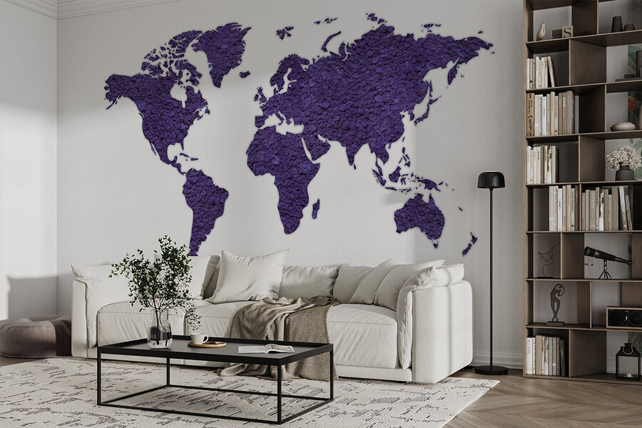 Verwandeln Sie Ihren Raum in eine Welt voller Abenteuer mit dieser atemberaubenden Fototapete “Map of the World”. Stellen Sie es sich vor – jedes Land leuchtet in einem satten Lila und lädt zu Tagträumen von fernen Orten und aufregenden Reisen ein. Es ist, als hätte man einen Gesprächsanlass direkt an der Wand! Freunde werden vorbeikommen und auf ihre Lieblingsorte hinweisen – “Oh, da war ich auch schon!” Und jedes Mal, wenn Sie einen Blick darauf werfen, planen Sie vielleicht schon Ihre nächste Reise (vielleicht zu dem kleinen Café in Paris, das Sie schon immer mal ausprobieren wollten). Dieses Wandbild eignet sich perfekt für ein Wohnzimmer, ein Schlafzimmer oder sogar ein gemütliches Arbeitszimmer und ist nicht nur dekorativ, sondern auch inspirierend! Wer hätte gedacht, dass Geografie so stilvoll sein kann? Ein Wandteppich aus Texturen und Farben, der den perfekten Hintergrund für spontane Tanzpartys oder ruhige Leseecken bildet. Lassen Sie Ihre Wände Bände sprechen!