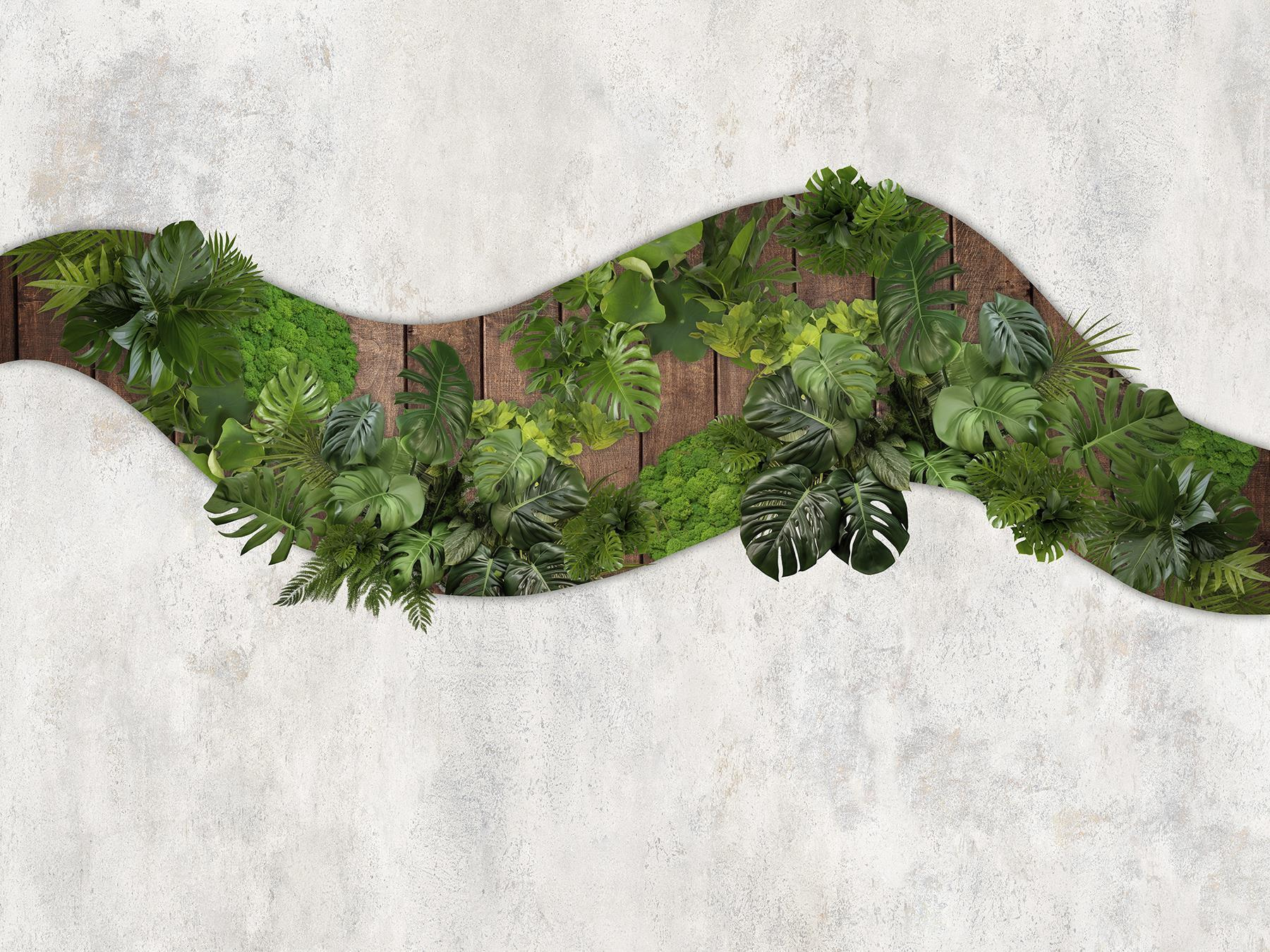 Fototapeten Grüne Blätter auf einer Holzoberfläche (Artikelnummer: w02658)