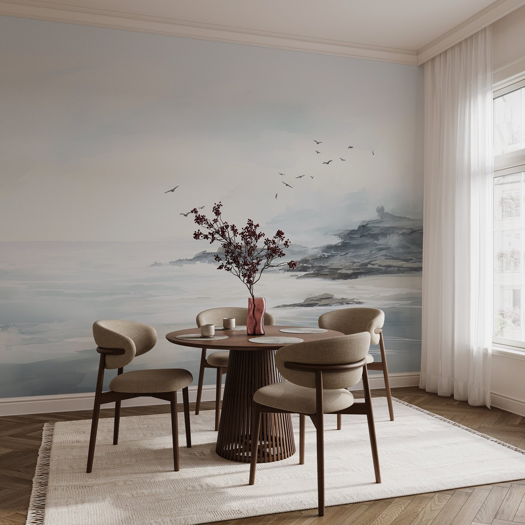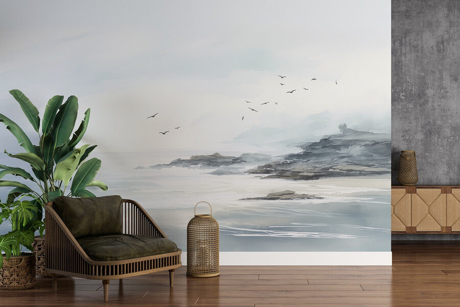 Verwandeln Sie jeden Raum mit dieser bezaubernden Fototapete “Birds Flying Over a Rocky Beach”. Stellen Sie sich vor, Sie wachen auf und sehen die sanften Farben des Ozeans und diese verträumten Vögel, die durch den Himmel segeln. Das ist wie ein Mini-Urlaub direkt an Ihrer Wand! Die sanften Farben schaffen eine beruhigende Atmosphäre, die perfekt für ein entspanntes Wohnzimmer oder ein ruhiges Schlafzimmer ist.