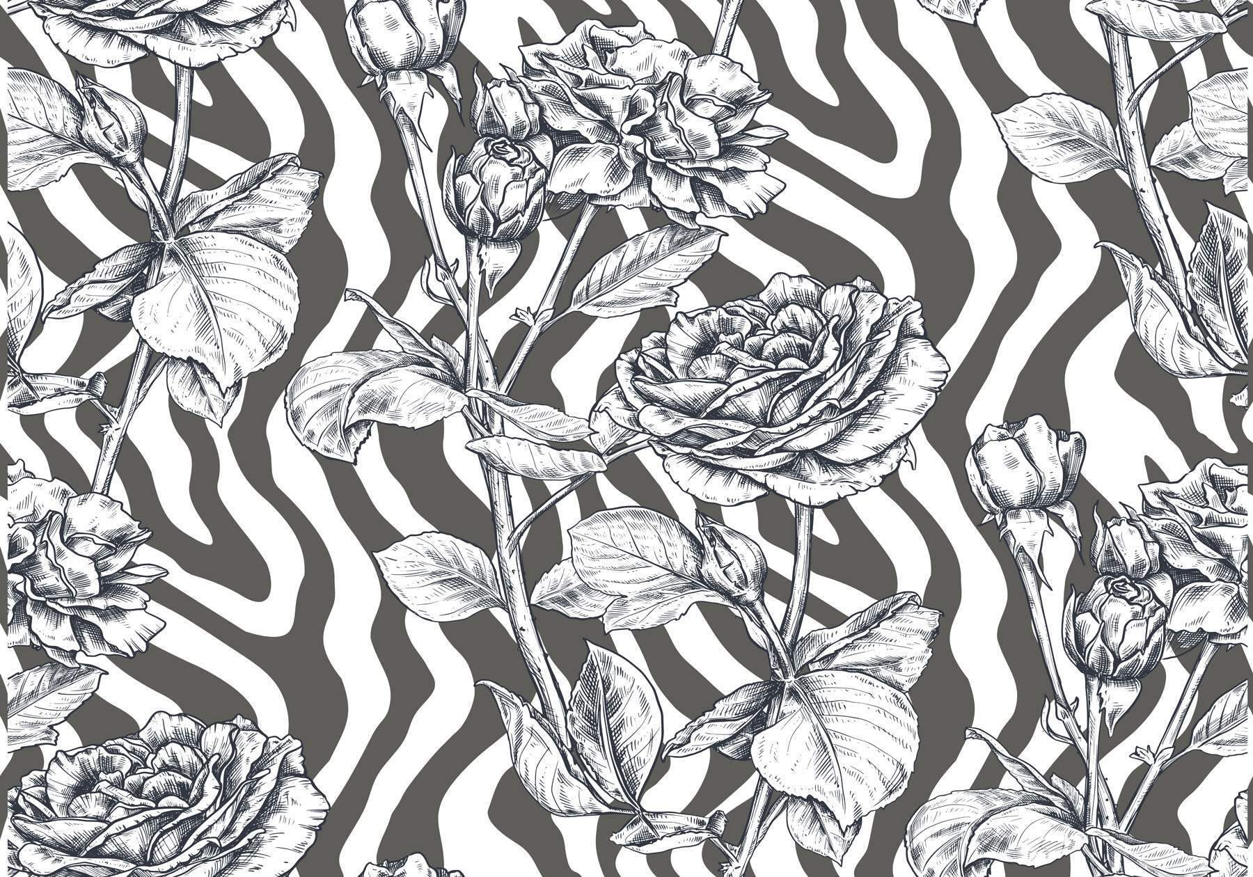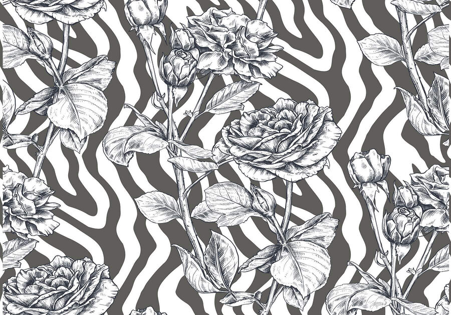 Verwandeln Sie Ihre Wände in ein atemberaubendes visuelles Fest mit diesem schwarz-weißen Rosen-Wandbild. Es ist, als hätte man einen Garten, der nie verwelkt, nur ohne Gießkanne und gelegentliches Ungeziefer. Die zarten Blumen tanzen auf einem schicken, gestreiften Hintergrund und verleihen ihm einen gewissen Pfiff, ohne ihn zu übertreiben. Stellen Sie sich vor, Sie schlürfen Ihren Morgenkaffee oder machen es sich mit einem Buch gemütlich, während Sie von dieser eleganten Blumenpracht umgeben sind. Ob in einem gemütlichen Wohnzimmer oder in einem stilvollen Büro, dieses Wandbild bringt einen Hauch von natürlichem Charme mit einem modernen Twist. Perfekt für alle, die sich nach einem Hauch von Persönlichkeit sehnen – ein grüner Daumen ist nicht erforderlich!