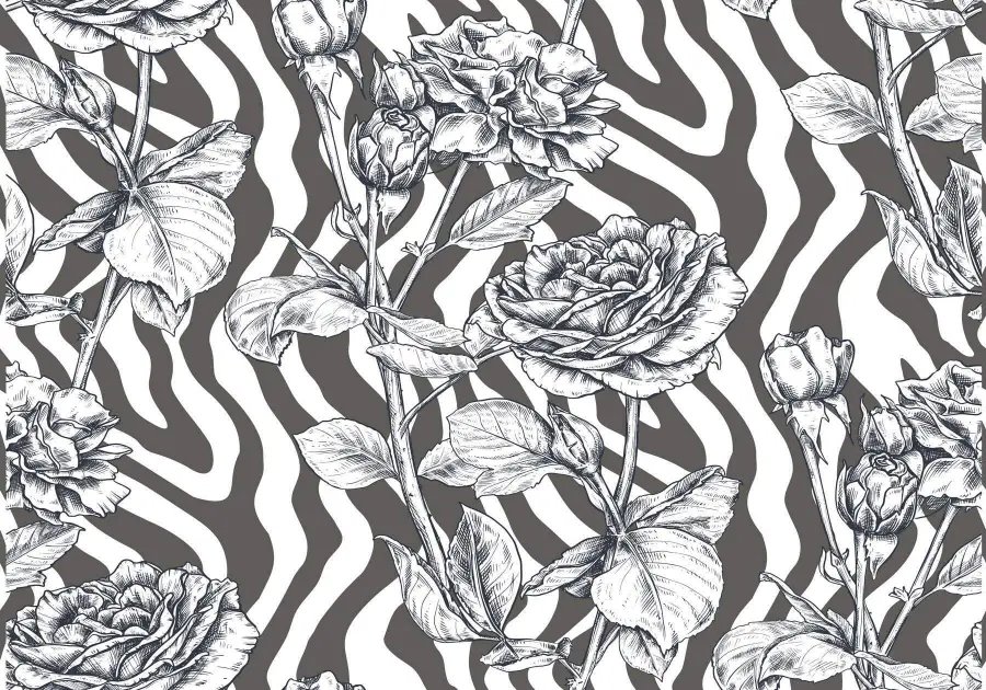 Verwandeln Sie Ihre Wände in ein atemberaubendes visuelles Fest mit diesem schwarz-weißen Rosen-Wandbild. Es ist, als hätte man einen Garten, der nie verwelkt, nur ohne Gießkanne und gelegentliches Ungeziefer. Die zarten Blumen tanzen auf einem schicken, gestreiften Hintergrund und verleihen ihm einen gewissen Pfiff, ohne ihn zu übertreiben. Stellen Sie sich vor, Sie schlürfen Ihren Morgenkaffee oder machen es sich mit einem Buch gemütlich, während Sie von dieser eleganten Blumenpracht umgeben sind. Ob in einem gemütlichen Wohnzimmer oder in einem stilvollen Büro, dieses Wandbild bringt einen Hauch von natürlichem Charme mit einem modernen Twist. Perfekt für alle, die sich nach einem Hauch von Persönlichkeit sehnen – ein grüner Daumen ist nicht erforderlich!