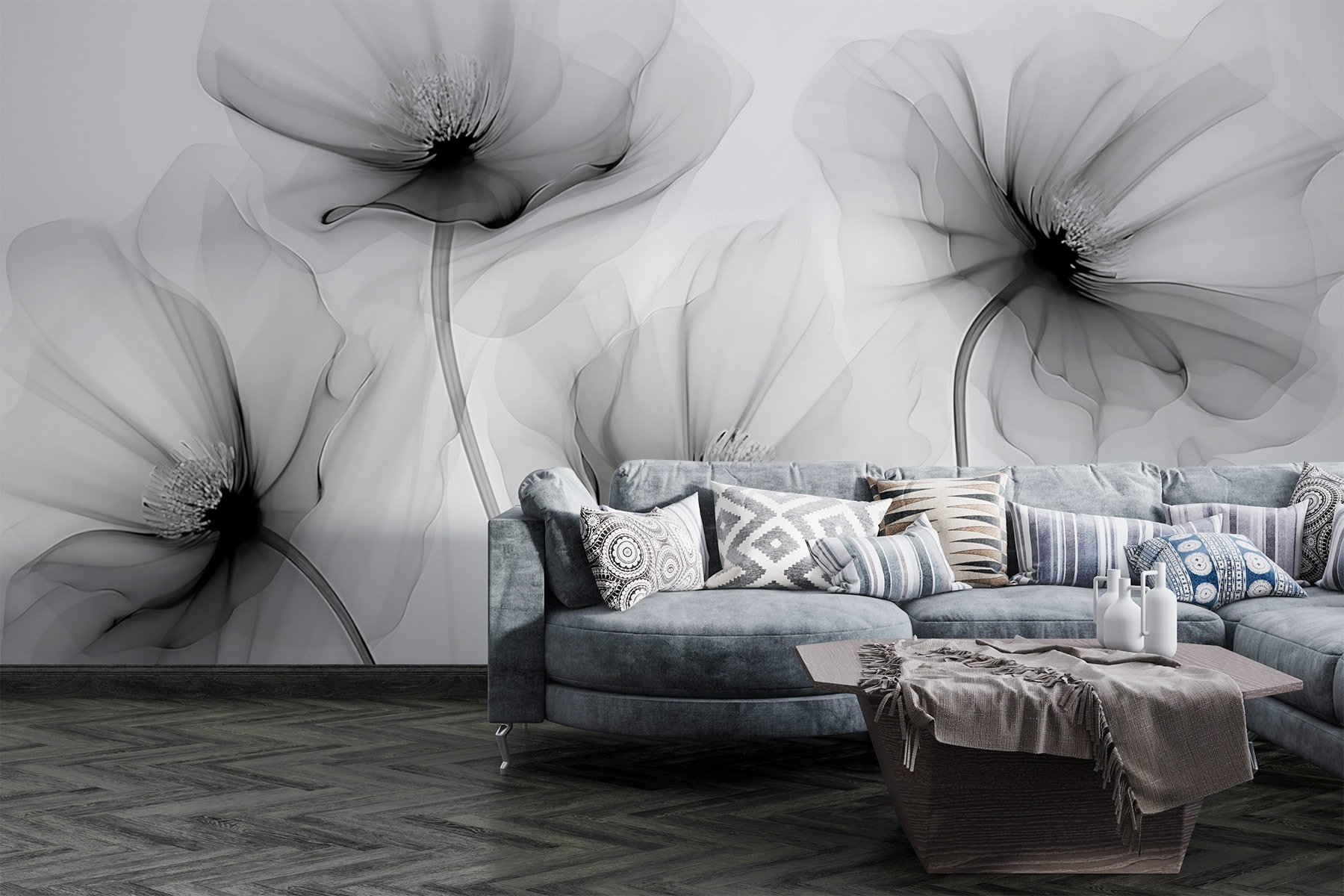 Sehen Sie sich vor dem Kauf genau an, wie Ihr Raum mit einer neuen Tapete aussehen wird. Professionelle Visualisierung durch erfahrene Designer ohne Kosten oder Kaufverpflichtung.