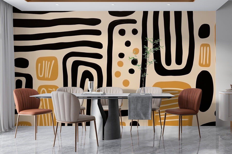 Verwandeln Sie jeden Raum mit dieser lebendigen Fototapete mit abstrakten Mustern in warmen, einladenden Tönen. Es ist, als ob Sie Ihren Raum in eine kuschelige Decke aus Kreativität einhüllen würden! Stellen Sie sich vor: Sie betreten Ihr Zimmer, und anstelle von tristen Wänden werden Sie von verspielten Wirbeln und kühnen Linien begrüßt, die Ihr Herz höher schlagen lassen. Ihre Freunde könnten denken, dass Sie einen schicken Designer engagiert haben. Aber in Wirklichkeit sind Sie einfach nur clever und sorgen für ein gewisses Flair. Diese Fototapete eignet sich perfekt für ein Wohnzimmer oder einen Arbeitsbereich und sorgt für Freude, sobald man sie sieht. Heizen Sie Ihre Wände ein und lassen Sie Ihre Persönlichkeit durchscheinen!