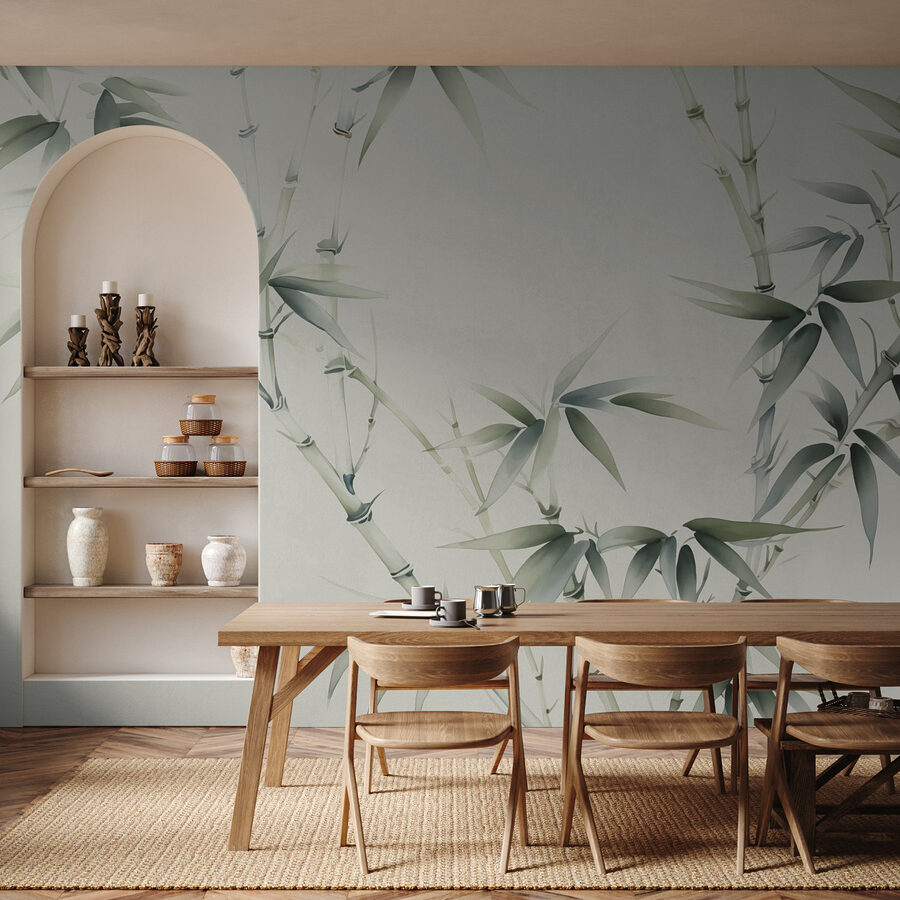 Verwandeln Sie Ihren Raum mit den Wandbildern Bambuszweige in sanftem Arrangement in eine heitere Oase. Stellen Sie sich vor, dass Sie jedes Mal, wenn Sie den Raum betreten, in eine ruhige Oase eintreten. Die zarten Bambusblätter scheinen sich sanft zu wiegen und laden zu einem Hauch von frischer Luft ein, selbst wenn es nur in Ihrem Wohnzimmer ist. Es ist, als hätte man ein Stückchen Natur, aber ohne die Ungeziefer. Die sanften Farben dieses Wandbildes harmonieren perfekt und schaffen eine so entspannte Atmosphäre, dass Sie den Wäschestapel ganz vergessen könnten. Diese Fototapete ist ideal für Räume, in denen man sich entspannen möchte, und bietet einen reizvollen Hauch von Natur, ohne dass man eine Pflanze am Leben erhalten muss. Erwecken Sie friedliche Schwingungen und lassen Sie den Bambus Ruhe in Ihr Zuhause flüstern.