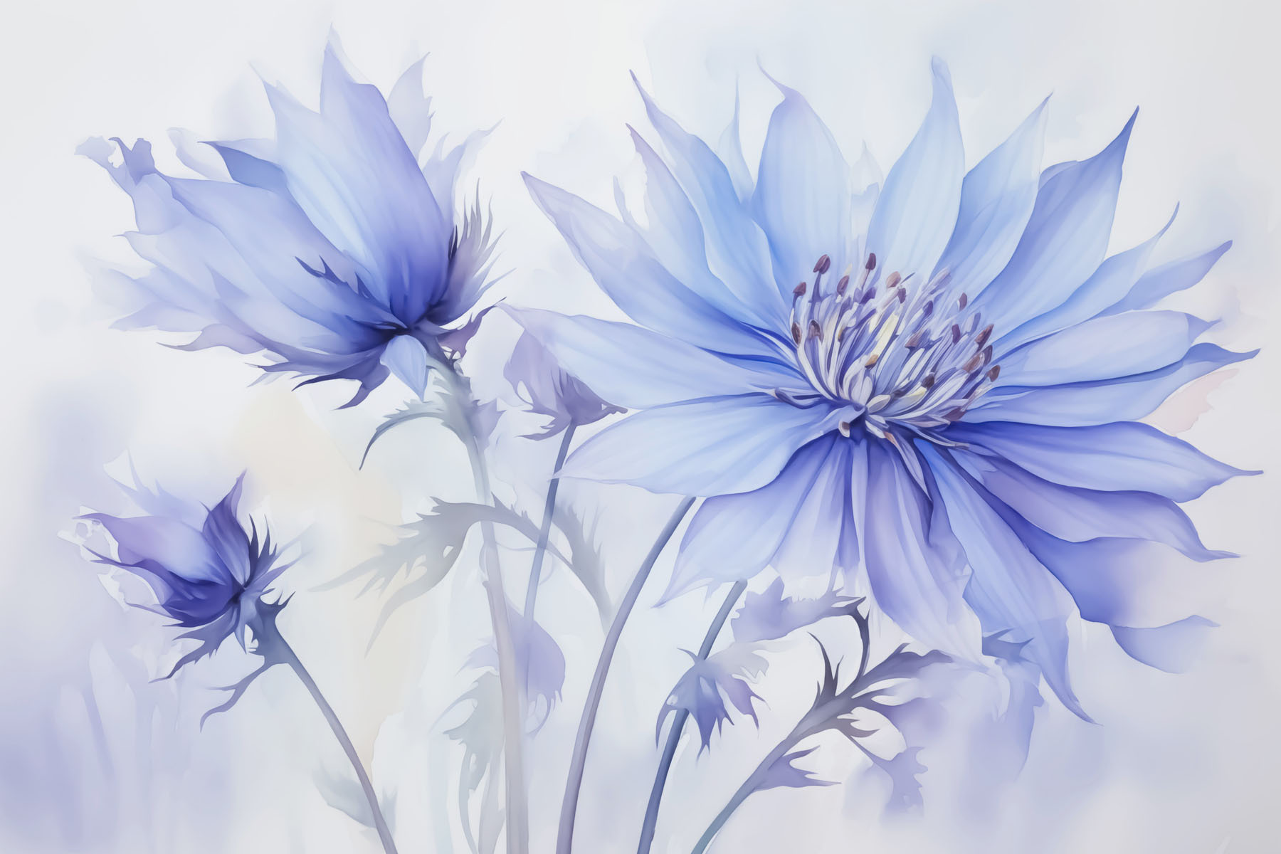 Verwandeln Sie Ihren Raum mit “Delicate Blooms in Soft Hues”. Diese Fototapete bringt einen Hauch von Natur direkt in Ihr Zuhause. Stellen Sie sich vor, Sie nippen an Ihrem Morgenkaffee und sonnen sich in den sanften Blautönen und zarten Blüten, die Ihnen Ruhe zu flüstern scheinen. Es ist, als würde man einen Garten ins Haus holen, nur ohne die Gießkanne – Gott sei Dank! Beim Aquarell-Stil geht es um weiche Kanten und eine verträumte Ausstrahlung, die jeden Raum ein wenig gemütlicher und einladender wirken lässt. Ihre Freunde könnten Ihre Wand sogar mit einer Kunstgalerie verwechseln – wie edel! Perfekt für ruhige Momente oder wenn Sie ein wenig Inspiration brauchen. Spüren Sie die friedliche Energie, die mit dieser floralen Schönheit durch Ihren Raum fließt.