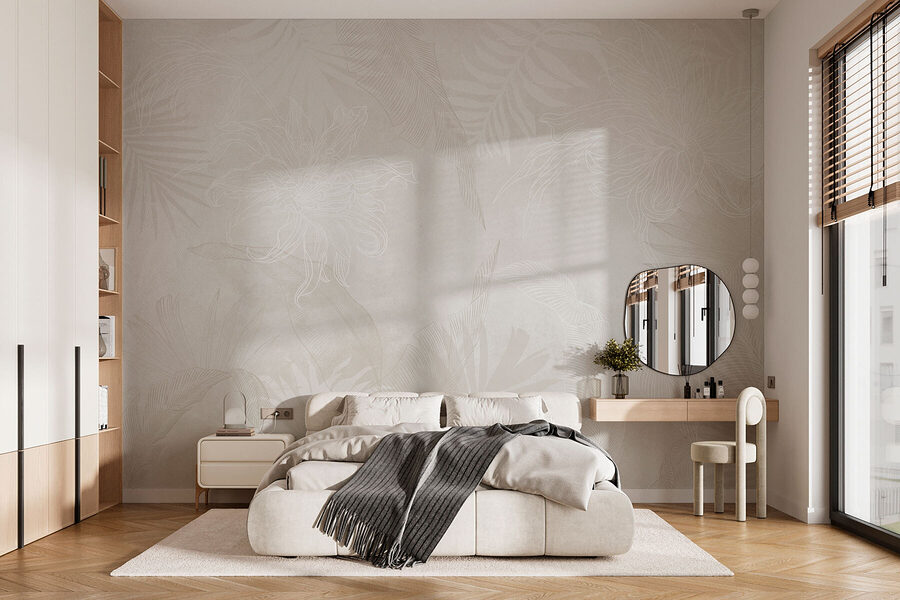 Verwandeln Sie jeden Raum in eine heitere Oase mit dieser atemberaubenden Fototapete mit einem dezenten weißen Hintergrund, der mit eleganten Blättern verziert ist. Es ist, als würde man die Natur ins Haus holen – ohne die lästigen Insekten. Stellen Sie sich vor, Sie wachen in einem Raum auf, in dem die sanften Umrisse von Palmwedeln Entspannung und Ruhe ausstrahlen. Perfekt für die Leseecke, von der Sie schon immer geträumt haben, oder auch als verspielter Akzent im Flur. Eine kleine Naturtherapie hat noch niemandem geschadet, oder? Die sanften Töne lassen sich wunderbar mit fast jedem Dekor kombinieren und verleihen Ihrem Raum ein frisches, luftiges Gefühl. Glauben Sie uns, Ihre Wände werden es Ihnen danken!