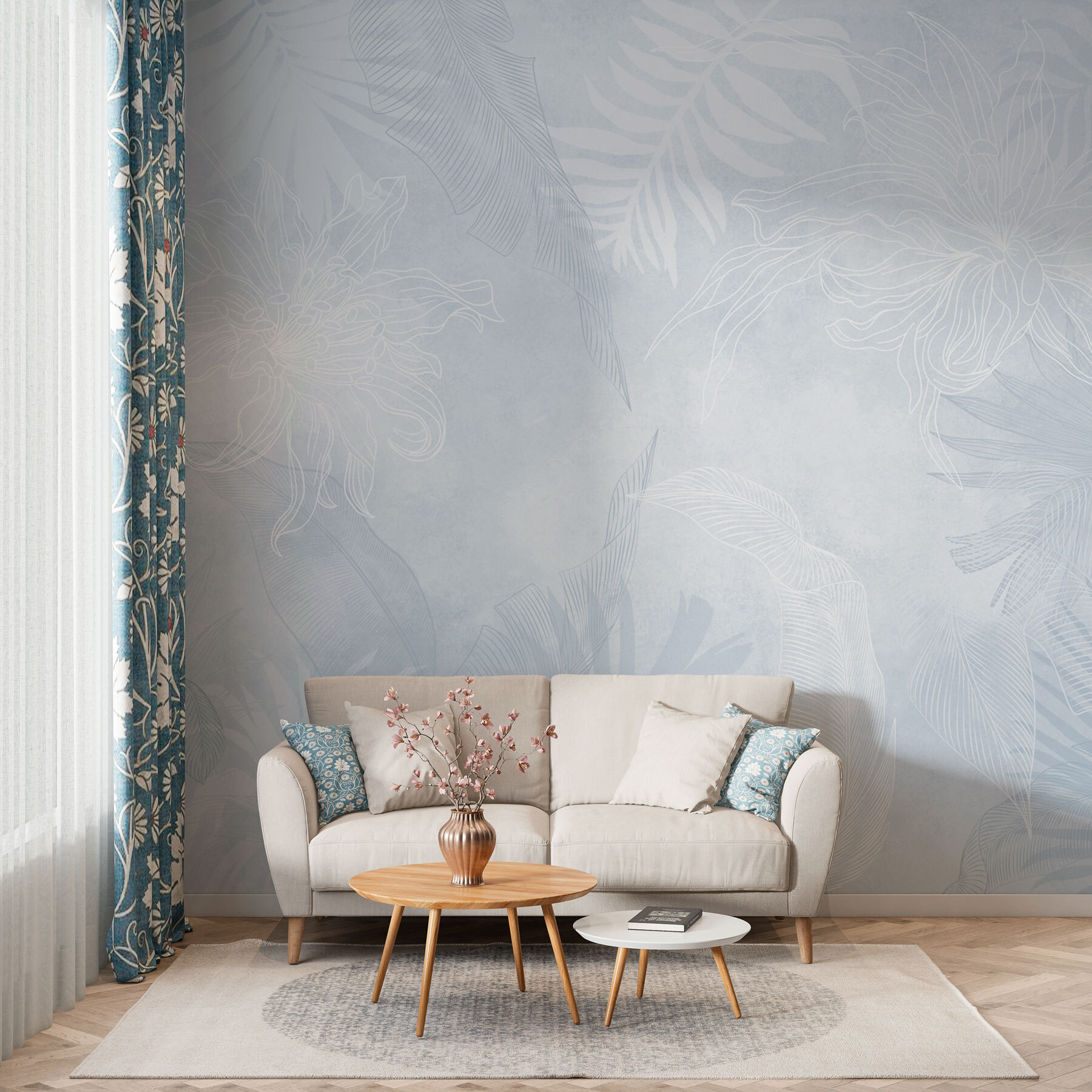 Stellen Sie sich vor, Sie schlürfen Ihren Morgenkaffee, während Sie von diesen beruhigenden Farbtönen umgeben sind, als ob Sie in einen ruhigen Garten entführt worden wären. Es ist nicht nur eine Dekoration, es ist eine ganze Stimmung – wie ein kleiner Urlaub in Ihrem Wohnzimmer. Die subtilen floralen Akzente bringen Leben in die Bude, ohne zu erdrücken, und passen so zu jedem Stil, ob gemütlich oder modern. Also, warum nur träumen? Es ist an der Zeit, Ihre Wände glücklich zu machen!