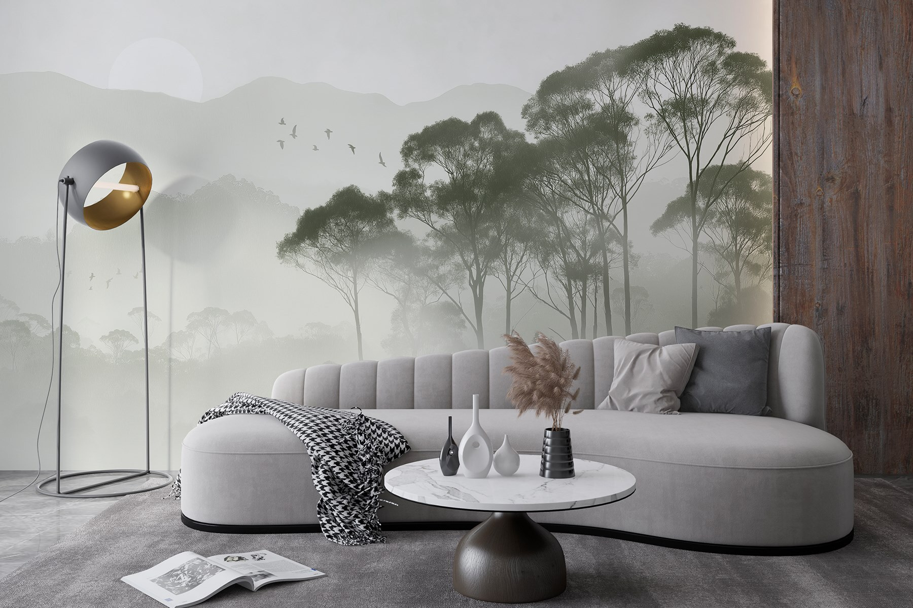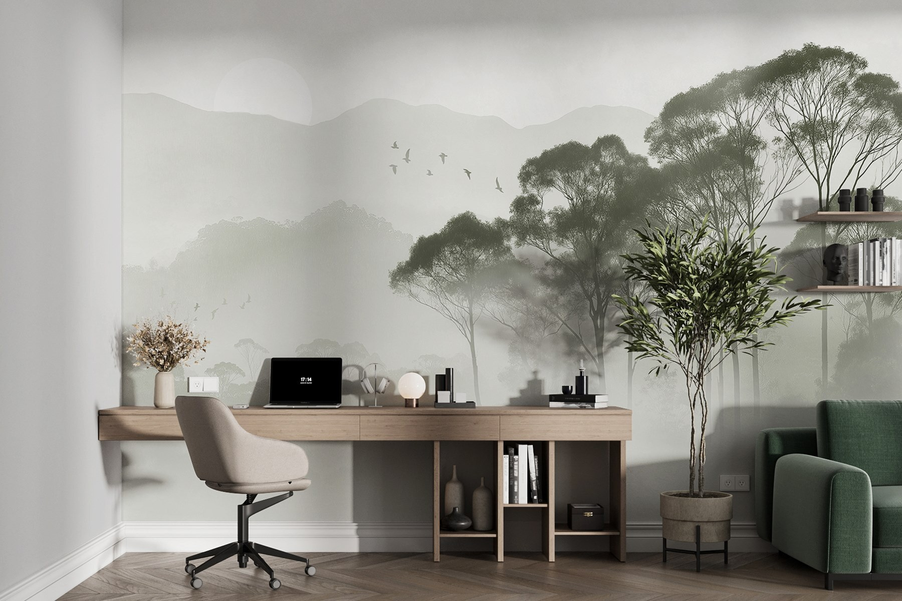 Verwandeln Sie Ihren Raum mit der bezaubernden Fototapete “Birds Flying Over Trees”. Stellen Sie sich einen nebligen Morgen vor, an dem zarte Grüntöne mit sanftem Grau spielen und eine ruhige Kulisse für verträumte Momente schaffen. Es ist, als hätte die Natur Ihrem Zimmer ein Geheimnis zugeflüstert! Stellen Sie sich vor, Sie wachen auf und werden von den auffliegenden Vögeln begrüßt, als ob sie Sie einladen würden, mit ihnen zu fliegen. Diese Fototapete fügt sich mühelos in eine gemütliche Einrichtung ein und macht sie zu einer perfekten Fluchtmöglichkeit, ohne das Haus zu verlassen. Und wer liebt nicht die beruhigende Atmosphäre eines Waldes, nicht wahr? Egal, ob es einer Leseecke Wärme verleiht oder einen tristen Flur belebt, es weckt ganz sicher ein wenig Fernweh. Lassen Sie Ihre Wände Ihre Liebe zur Natur zum Ausdruck bringen!