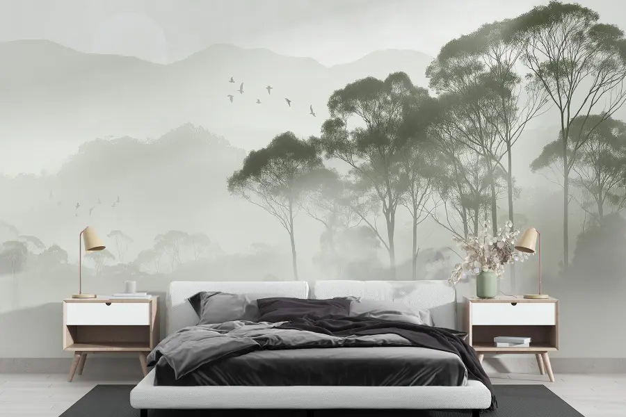 Verwandeln Sie Ihren Raum mit der bezaubernden Fototapete “Birds Flying Over Trees”. Stellen Sie sich einen nebligen Morgen vor, an dem zarte Grüntöne mit sanftem Grau spielen und eine ruhige Kulisse für verträumte Momente schaffen. Es ist, als hätte die Natur Ihrem Zimmer ein Geheimnis zugeflüstert! Stellen Sie sich vor, Sie wachen auf und werden von den auffliegenden Vögeln begrüßt, als ob sie Sie einladen würden, mit ihnen zu fliegen. Diese Fototapete fügt sich mühelos in eine gemütliche Einrichtung ein und macht sie zu einer perfekten Fluchtmöglichkeit, ohne das Haus zu verlassen. Und wer liebt nicht die beruhigende Atmosphäre eines Waldes, nicht wahr? Egal, ob es einer Leseecke Wärme verleiht oder einen tristen Flur belebt, es weckt ganz sicher ein wenig Fernweh. Lassen Sie Ihre Wände Ihre Liebe zur Natur zum Ausdruck bringen!