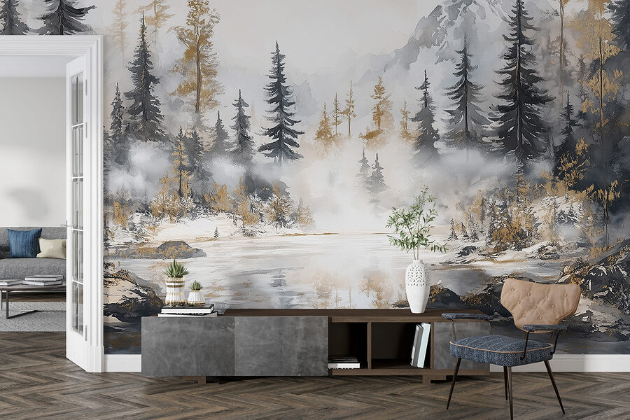 Verwandeln Sie Ihren Raum in einen ruhigen Zufluchtsort mit dieser atemberaubenden Aquarellwandmalerei eines Waldes und von Bergen. Es ist, als würde man die Ruhe der Natur ins Haus holen, ohne Mückenstiche und matschige Schuhe. Stellen Sie sich gemütliche Abende vor, die Sie am “Feuer” (oder nur mit einer flackernden Kerze) verbringen, während Sie auf die nebligen Bäume und hoch aufragenden Gipfel blicken – wer braucht schon einen Wanderschuh, wenn Sie diese Schönheit an der Wand haben? Diese Fototapete eignet sich perfekt für ein Wohnzimmer oder eine ruhige Leseecke und vermittelt Entspannung. Es ist eine kunstvolle Erinnerung daran, tief durchzuatmen und die Natur ihre Magie wirken zu lassen, direkt in Ihrem Zuhause.