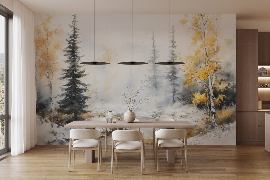 Fototapeten Malerei von Bäumen in einer Reihe