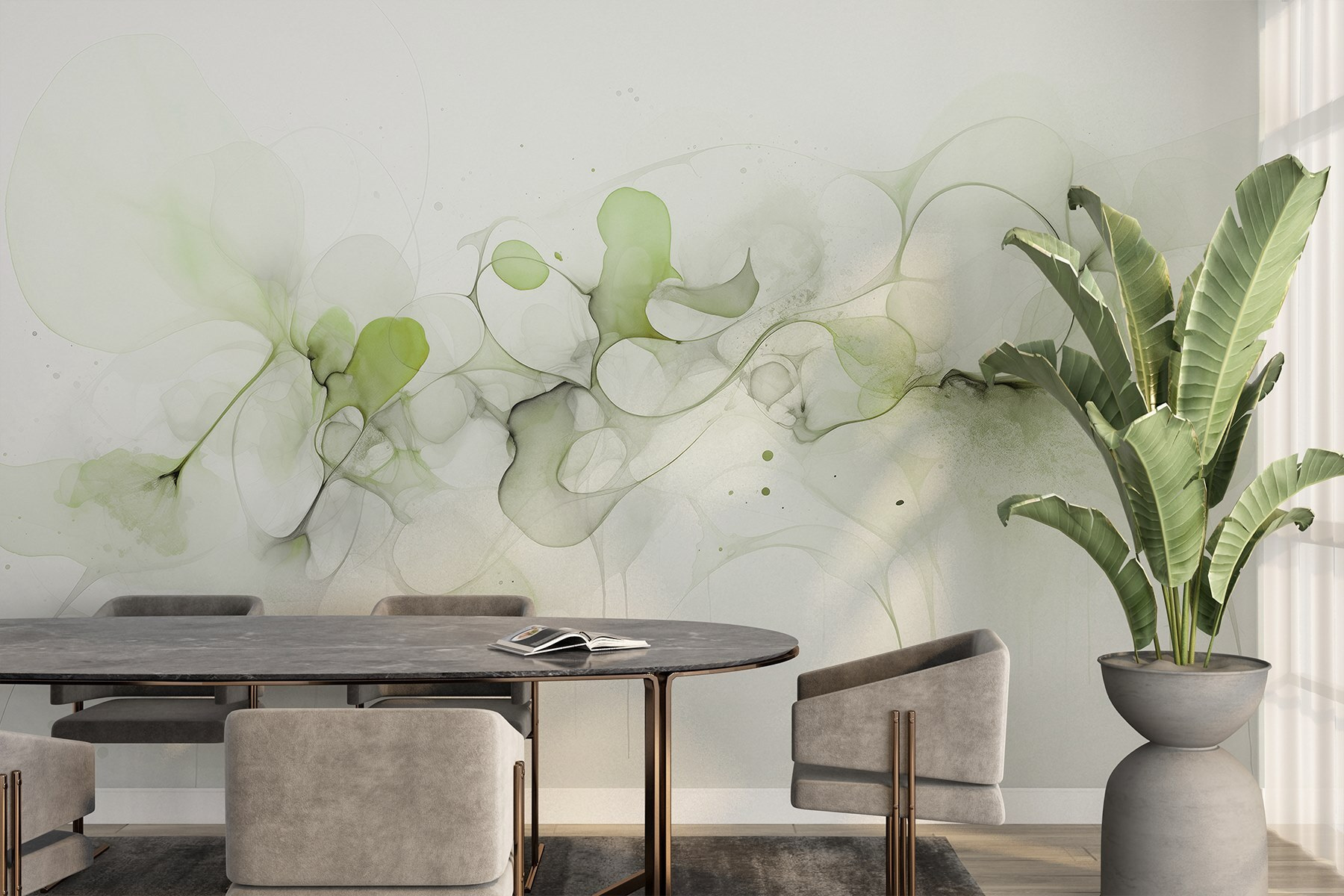 Verwandeln Sie jeden Raum mit der Fototapete “Fließende Muster in sanften Grüntönen”. Es ist, als hätte die Natur selbst beschlossen, eine Aquarellparty an Ihrer Wand zu veranstalten! Stellen Sie sich vor, Sie betreten einen Raum und werden von sanften Grüntönen begrüßt, die sich wie eine sanfte Umarmung anfühlen. Dieses Wandbild sprüht nur so vor Energie und lädt zu Ruhe und Kreativität ein. Perfekt für eine gemütliche Leseecke oder eine kahle Wand, die nach etwas Charakter schreit. Vielleicht regt es sogar zu Tagträumen über sonnige Wiesen oder faule Nachmittage an einem ruhigen Bach an. Es ist mehr als nur Dekoration; es ist eine Erfahrung, eine Stimmung. Lassen Sie die beruhigenden Farben Entspannung in Ihr Zuhause flüstern!