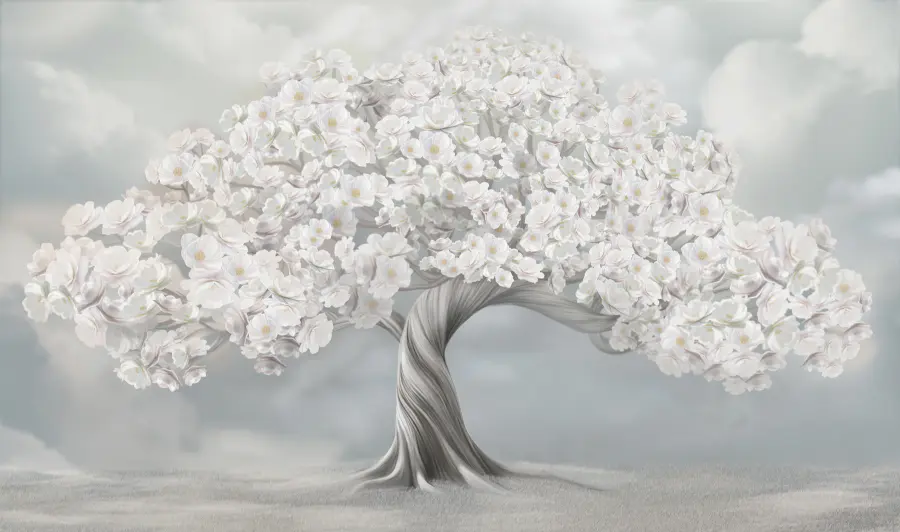 Diese bezaubernde Fototapete mit einem Baum, der von zarten weißen Blumen umhüllt ist, verleiht jedem Raum eine neue Note. Es erinnert an friedliche Spaziergänge durch einen ruhigen japanischen Garten, in dem jedes Blütenblatt Geschichten der Ruhe flüstert. Stellen Sie sich vor, Sie wachen mit diesem wunderschönen Anblick auf, der Sie sanft an die Kunstfertigkeit der Natur erinnert. Die sanften Farben schaffen eine beruhigende Atmosphäre; es ist, als hätte man ein kleines Stück Natur im Haus, perfekt für gemütliche Räume. Ihre Freunde werden es bemerken und Sie vielleicht fragen, ob Sie insgeheim ein botanischer Künstler geworden sind. Ihre Wohnung wird sich lebendig und frisch anfühlen und zu einem Lächeln und einem Hauch von Wärme einladen.