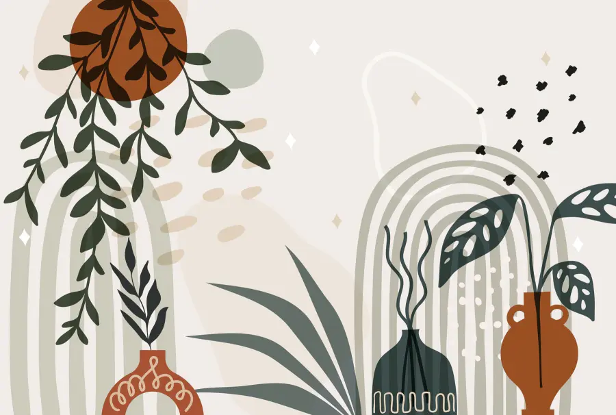 Verwandeln Sie jeden Raum in einen gemütlichen Rückzugsort mit dieser hübschen Fototapete, die eine charmante Mischung aus Pflanzen und Töpfen zeigt. Es ist, als würde man sich einen kleinen Garten ins Haus holen, ohne dass man sich um das Gießen oder das Welken der Blätter kümmern muss – wer braucht schon diesen Stress? Die beruhigenden Farben und verspielten Formen laden zu einem Gefühl der Ruhe ein, perfekt für gemütliche Abende oder faule Sonntagmorgen. Stellen Sie sich vor, Sie nippen an Ihrem Kaffee, betrachten dieses Wandbild und spüren einen sofortigen Stimmungsaufschwung! Es ist eine reizvolle Idee, die Freude macht und jedem Raum eine warme Atmosphäre verleiht, die Sie daran erinnert, dass die Schönheit der Natur nur einen Blick entfernt ist. Perfekt für Pflanzenliebhaber oder alle, die einen besonderen Akzent setzen wollen!