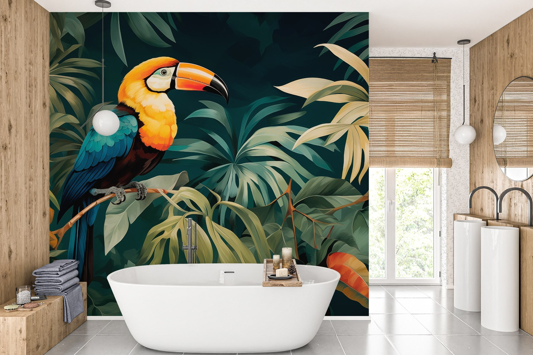 Verwandeln Sie Ihren Raum mit einem Hauch von natürlichem Charme! Diese Fototapete mit einem lebhaften Vogel auf einem Ast bringt einen Hauch von Dschungel in Ihr Zuhause. Stellen Sie sich vor, wie es einen Raum erhellt und ihn mit einem Gefühl von Abenteuer und Ruhe erfüllt. Es ist, als hätte man ein kleines Stück vom Paradies an der Wand!