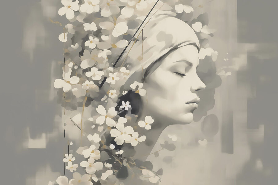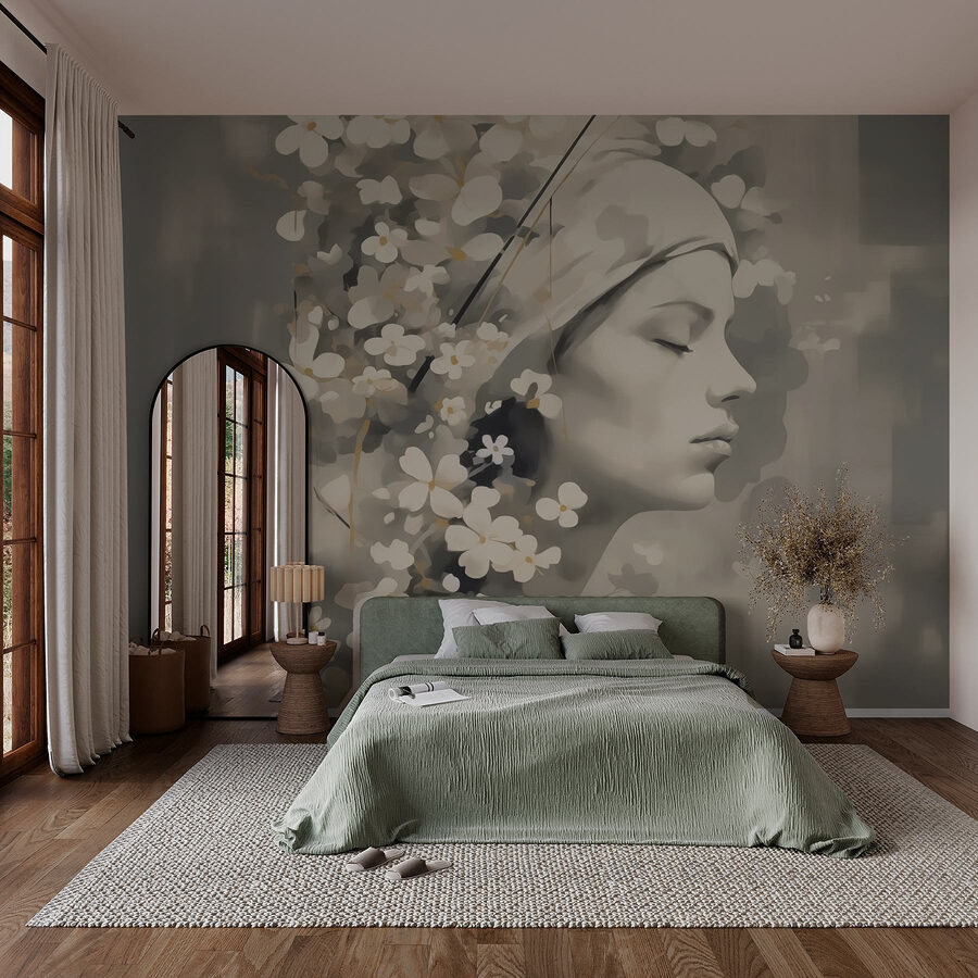 Das Wandbild “Soft Serenity Among Delicate Blooms” bietet einen Ort der Ruhe und Entspannung. Stellen Sie sich vor: eine friedliche Ecke, in der Eleganz und Natur aufeinandertreffen und Ruhe in Ihren Raum einladen. Die sanften Farbtöne und die zarten Blüten erinnern an einen morgendlichen Spaziergang in einem japanischen Garten, während die anmutige Figur einen Hauch von Geheimnis hinzufügt. Stellen Sie sich vor, Sie nippen am Tee, betrachten diese Schönheit und spüren, wie der Stress des Tages von Ihnen abfällt. Es ist, als hätten Sie einen ruhigen, blumigen Freund an Ihrer Wand. Perfekt für jeden Raum, der einen Hauch von Anmut verdient. Wer würde sich das nicht wünschen?