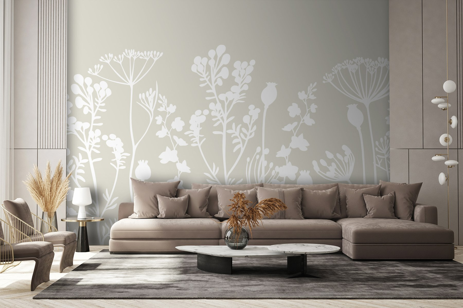 Verwandeln Sie eine schlichte Wand in einen heiteren Garten mit den “Fototapeten White Silhouettes of Flowers”. Diese eleganten, weißen Blumensilhouetten tanzen vor einem sanften Hintergrund und bringen eine friedliche Stimmung in jeden Raum. Stellen Sie sich vor, Sie betreten einen Raum, in dem die Natur leise vor sich hin flüstert, fast so, als ob die Blumen ihre Geheimnisse mit Ihnen teilen würden. Es ist, als hätten Sie einen persönlichen Blumenladen in Ihrem Zuhause, nur ohne Gießkanne. Dieses Wandbild eignet sich perfekt für eine gemütliche Leseecke oder eine helle Küche und kann zu Tagträumen und Kreativität anregen. Ein wahrer Stimmungsaufheller! Und denken Sie nur an all die Komplimente von Freunden und Familie – wer liebt nicht ein wenig blumigen Charme?