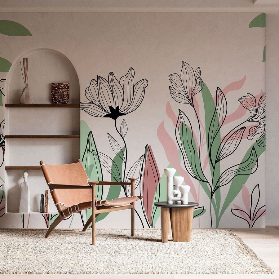 Verwandeln Sie eine triste Wand in ein blühendes Paradies mit dem Wandbild “Line of Flowers and Leaves”. Stellen Sie sich vor, Sie schlendern jeden Tag durch einen Garten, in dem jedes Blütenblatt und jedes Blatt einen frischen Hauch von Leben in Ihren Raum bringt. Die zarten Umrisse vermischen sich mit sanften Farben und schaffen eine heitere Atmosphäre, die sich perfekt für jeden Raum eignet – egal ob es sich um eine gemütliche Ecke oder einen großzügigen Wohnbereich handelt. Ihre Freunde werden Sie vielleicht fragen, ob Sie einen Blumenladen im Haus haben. Es ist wie ein Flüstern der Natur, das Sie daran erinnert, langsamer zu werden und den Moment zu genießen – und das alles, ohne dass Sie einen grünen Daumen haben müssen. Dieses Wandbild ist nicht nur Dekoration, sondern auch ein Erlebnis.