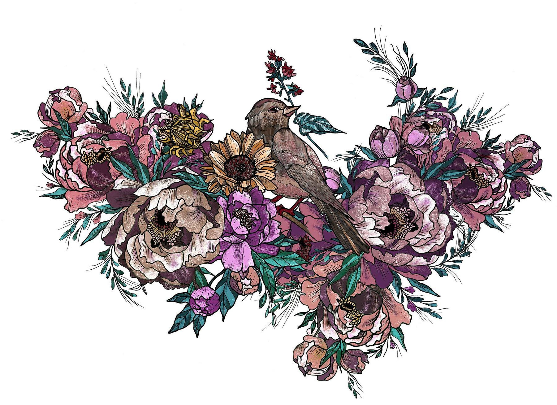 Verwandeln Sie jede Wand in einen Garten mit dem Wandbild “Bird Sitting on a Bouquet of Flowers”. Stellen Sie sich vor: ein kleiner Vogel, der auf einem bunten Blumenstrauß aus Pfingstrosen, Sonnenblumen und zarten Blättern sitzt, der vor Persönlichkeit nur so strotzt. Es ist, als hätte die Natur beschlossen, eine Party in Ihrem Wohnzimmer zu feiern! Stellen Sie sich die Freude vor, die sie Ihnen jeden Morgen bereitet, wenn sie das Licht genau richtig einfängt und Ihrem Raum einen Hauch von Farbe verleiht. Ihre Freunde werden Sie vielleicht fragen: “Hast du einen Floristen engagiert?” – aber nein, das ist nur künstlerisches Gespür bei der Arbeit. Sie eignet sich perfekt für eine gemütliche Ecke oder eine leere Wand und sorgt überall für eine frische, verspielte Atmosphäre. Wer wünscht sich nicht eine tägliche Dosis blumiger Freude?
