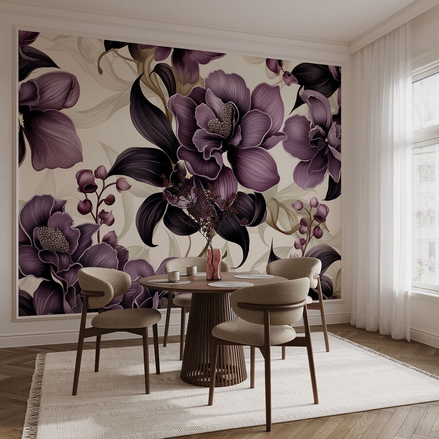 Verwandeln Sie jeden Raum in ein botanisches Traumland mit diesem eleganten lilafarbenen Blumenwandbild. Es ist, als würde man einen üppigen Garten ins Haus holen, ohne die lästigen Pollen! Die dramatischen Blüten in tiefen Lila- und sanften Lavendeltönen tanzen über Ihre Wände und machen jeden Blick zu einer kleinen Flucht in eine heitere Oase. Stellen Sie sich vor, wie Sie es sich mit einem Buch gemütlich machen oder Freunde einladen, während Sie von diesen atemberaubenden Blumen umgeben sind – ein wahres Stimmungswunder! Diese Fototapete eignet sich perfekt für Wohn- und Schlafzimmer oder sogar für eine charmante kleine Ecke und verspricht, den Alltag in ein Fest für die Augen zu verwandeln. Warum also nicht Ihre Wände erblühen lassen?
