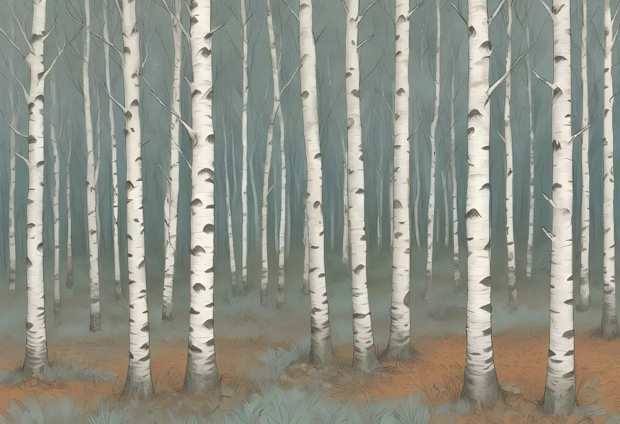 Bei jedem Blick auf diese atemberaubende Fototapete tauchen Sie in einen ruhigen Wald ein. Mit einer Gruppe eleganter Birken bringt es die friedliche Atmosphäre der Natur direkt in Ihr Zuhause. Stellen Sie sich vor, Sie machen es sich mit einem guten Buch gemütlich und fühlen sich wie in einem kuscheligen Waldrefugium. Die sanften Farben schaffen eine beruhigende Atmosphäre, die sich perfekt für jeden Raum eignet – vom Wohnzimmer bis zur Meditationsecke.