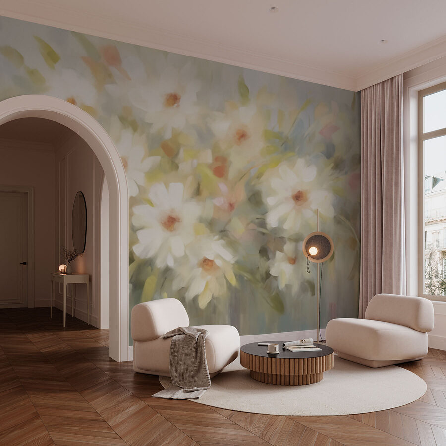 Verwandeln Sie jeden Raum in einen ruhigen Rückzugsort mit dieser verträumten Wandtapete mit weißen Blumen. Es ist, als würde man einen Garten ins Haus holen, ohne die lästigen Pollen. Stellen Sie sich vor, Sie wachen mit diesen zarten Blüten auf – diese sanften, gedämpften Farben, die den Raum umhüllen und ihn in eine gemütliche Umarmung hüllen. Perfekt für einen Hauch von Natur in einem Wohnzimmer oder sogar für eine beruhigende Stimmung in einem Schlafzimmer. Stellen Sie sich vor, ein Freund kommt herein, hält inne und sagt: “Wow, das ist wie ein Hauch von frischer Luft! Ob beim morgendlichen Kaffee oder bei abendlichen Gesprächen, dieses Wandbild sorgt für die richtige Stimmung. Mit seinem mühelosen Charme ist es ein floraler Tagtraum, der darauf wartet, Ihre Wände zu erhellen.