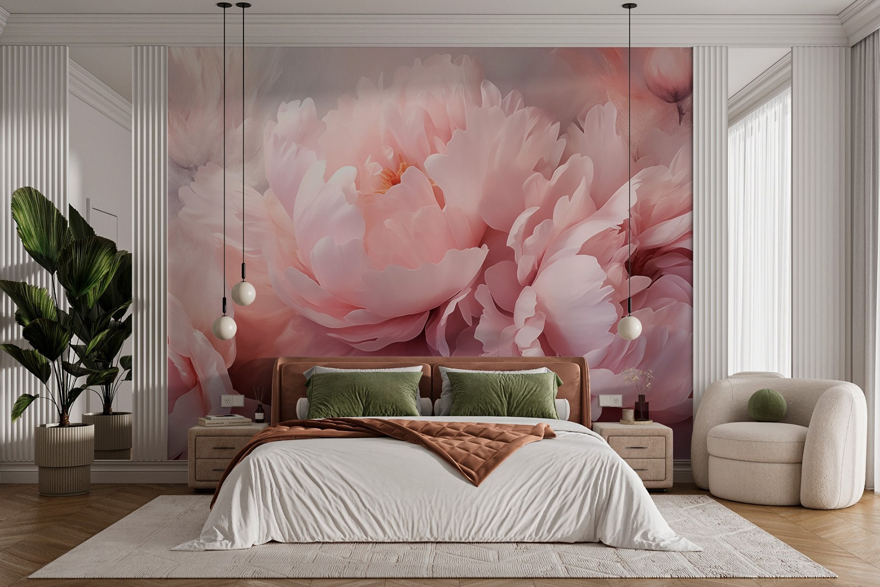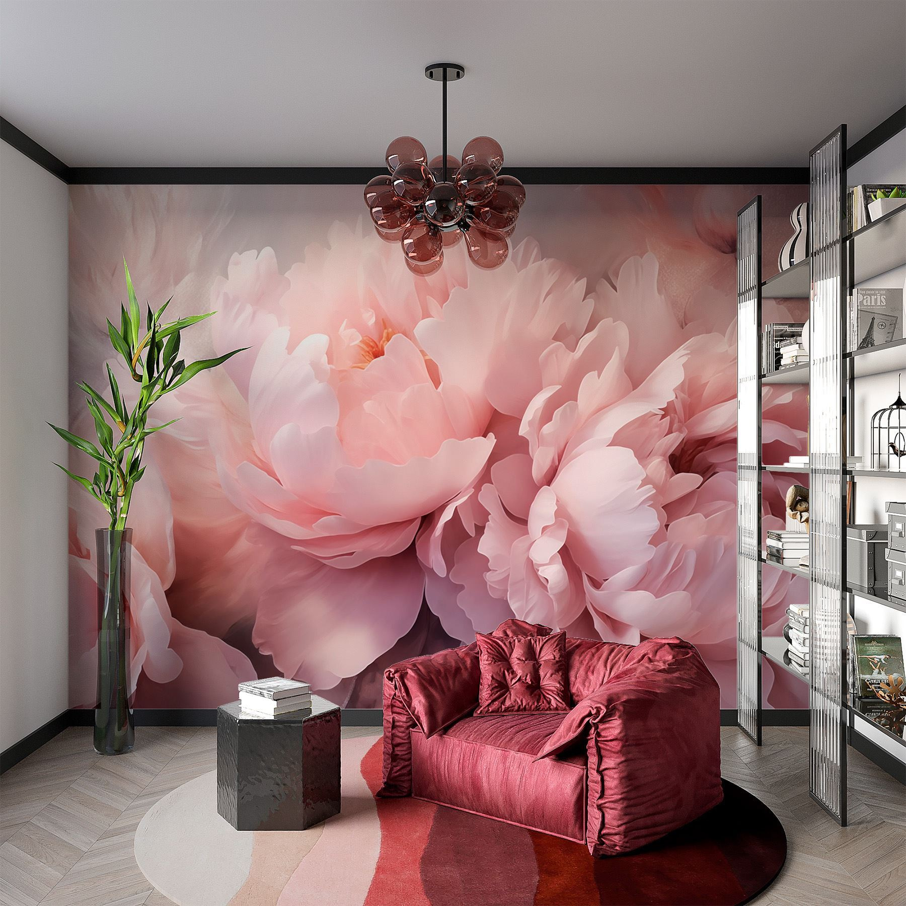 Verwandeln Sie jeden Raum mit dem bezaubernden Charme dieser Fototapete, auf der zartrosa Blütenblätter anmutig aufblühen. Jedes Mal, wenn Sie den Raum betreten, ist es, als würden Sie einen verträumten Garten betreten. Stellen Sie sich vor, Sie schlürfen Ihren Morgenkaffee, umgeben von Pfingstrosen, die so lebensecht sind, dass Sie nach Bienen Ausschau halten könnten! Die sanften Farbtöne sorgen für eine heitere Stimmung – perfekt für eine gemütliche Leseecke oder einen erhellenden Akzent in einem Flur. Ihre Freunde werden Sie zweifellos fragen, woher diese schöne Stimmung kommt. Dieses Wandbild dekoriert nicht nur, es bringt Wärme, Gelassenheit und einen Hauch von Naturzauber in den Alltag.