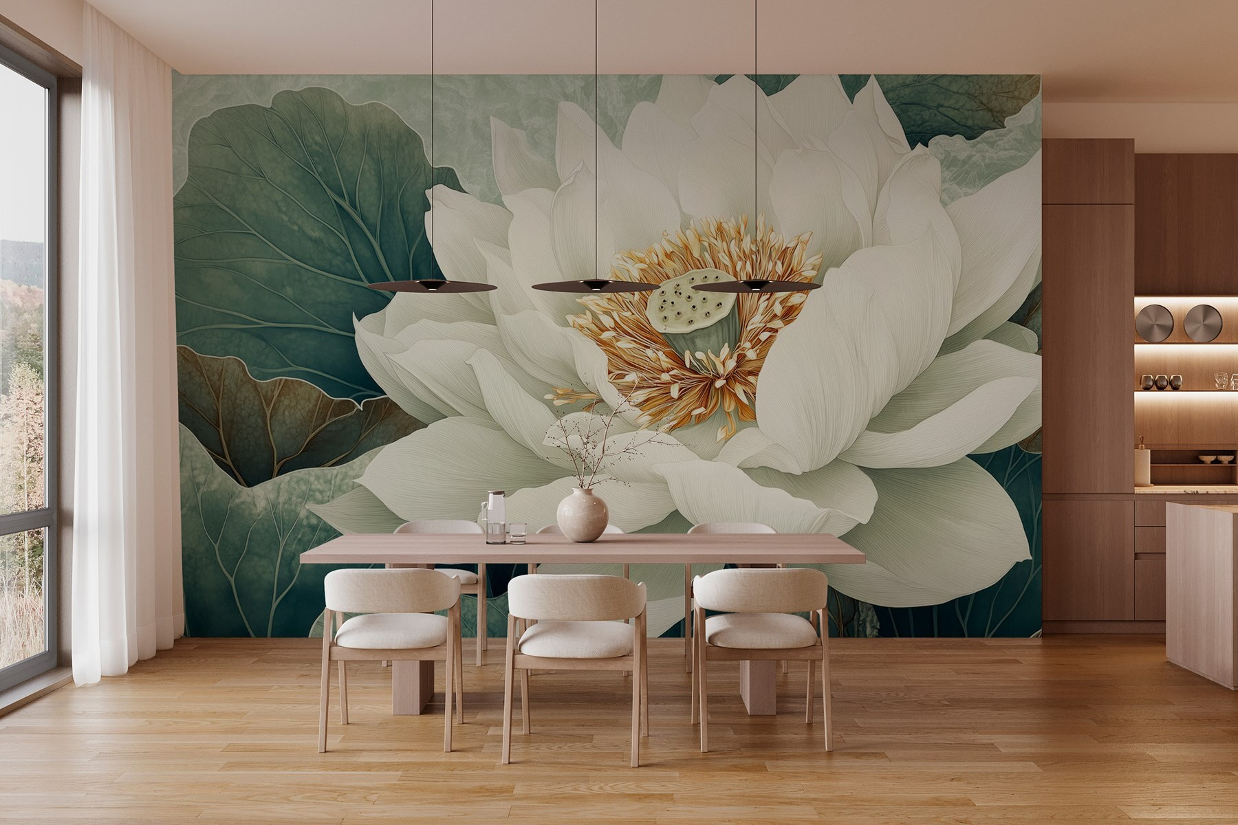 Verwandeln Sie Ihren Raum mit dieser bezaubernden Fototapete “Weiße Blume mit grünen Blättern”. Stellen Sie sich vor, Sie betreten einen Raum, in dem eine atemberaubende Blüte Leben und Licht zu atmen scheint. Die filigranen Details sind wie das Flüstern der Natur und laden zu Ruhe und Gelassenheit ein. Dieses Wandbild ist nicht nur Dekoration, es ist eine Stimmung! Stellen Sie sich vor, Sie machen es sich mit einem guten Buch gemütlich, und die sanften Grün- und Weißtöne legen sich wie eine kuschelige Decke um Sie. Wenn Freunde vorbeikommen, fallen ihnen die Augen aus dem Kopf – das ist die Art von Magie. Perfekt, um einen Hauch von Eleganz hinzuzufügen; es ist, als würde man einen Garten ins Haus holen, ohne die Allergien. Erfrischend, zeitlos und sehr charmant!